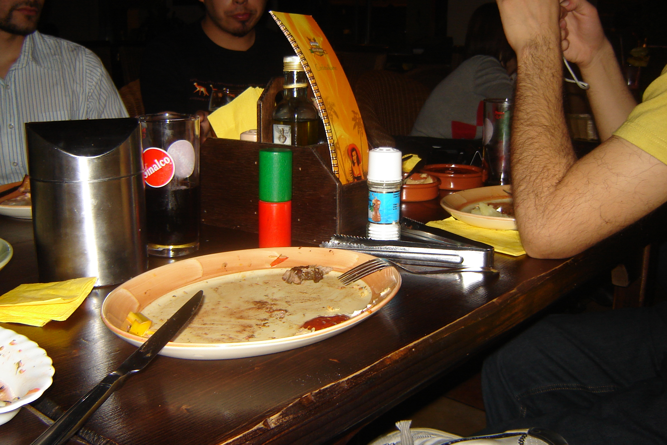 많은 레스토랑에서는 식사객에게 색깔이 있는 카드나 토큰을 제공한다. 한쪽 면의 녹색은 서버에게 더 많은 고기를 가져다 달라는 신호를 보낸다. 다른 쪽 면의 빨간색은 식사객이 현재 충분하다는 것을 나타낸다.[1] 이것이 반드시 식사가 끝났음을 의미하는 것은 아니며, 단지 현재 더 이상 고기 제공을 원하지 않는다는 것을 나타낸다.