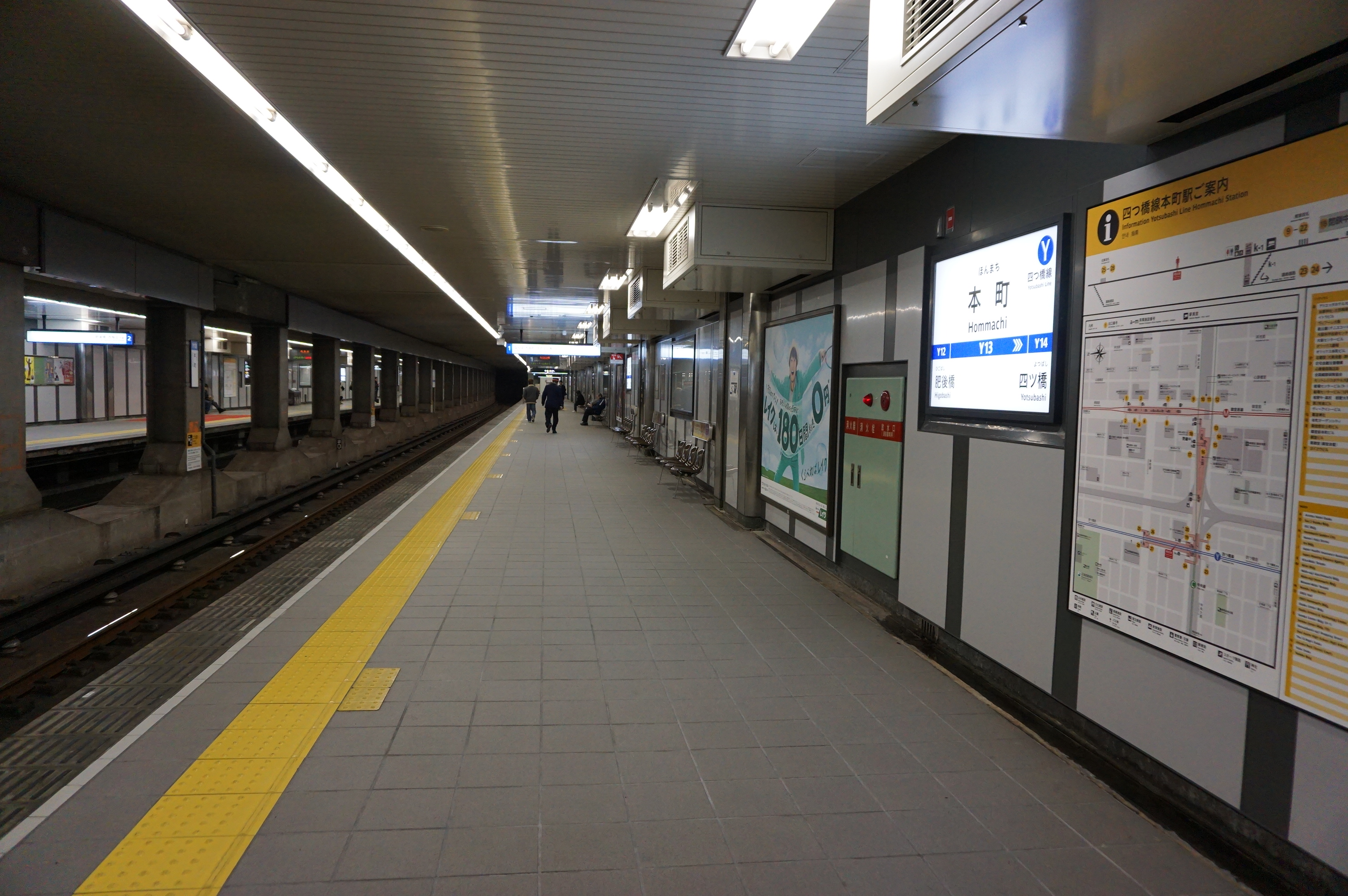 요쓰바시선 역은 1965년 시나노바시역(信濃橋駅)으로 개업했으며, 1969년 혼마치역으로 역명이 변경되었다. 지하 1층에 오사카 메트로 요쓰바시선 2면 2선의 상대식 승강장이 있다.