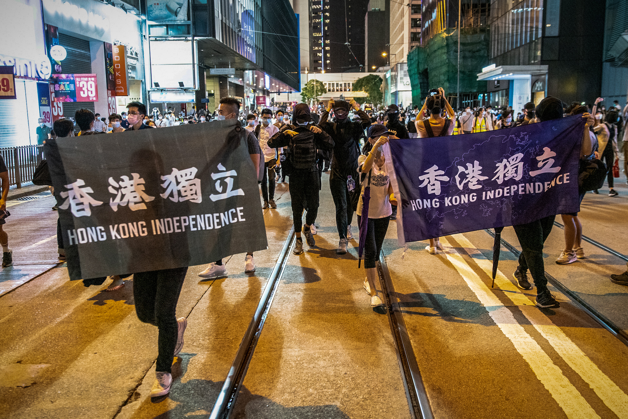 2020년 7월 1일, 홍콩 국가보안법 시행 이후 첫 체포자가 발생했다.[70] 2021년, 홍콩 독립을 주장하는 시위 참가자들에게 실형이 선고되었다.