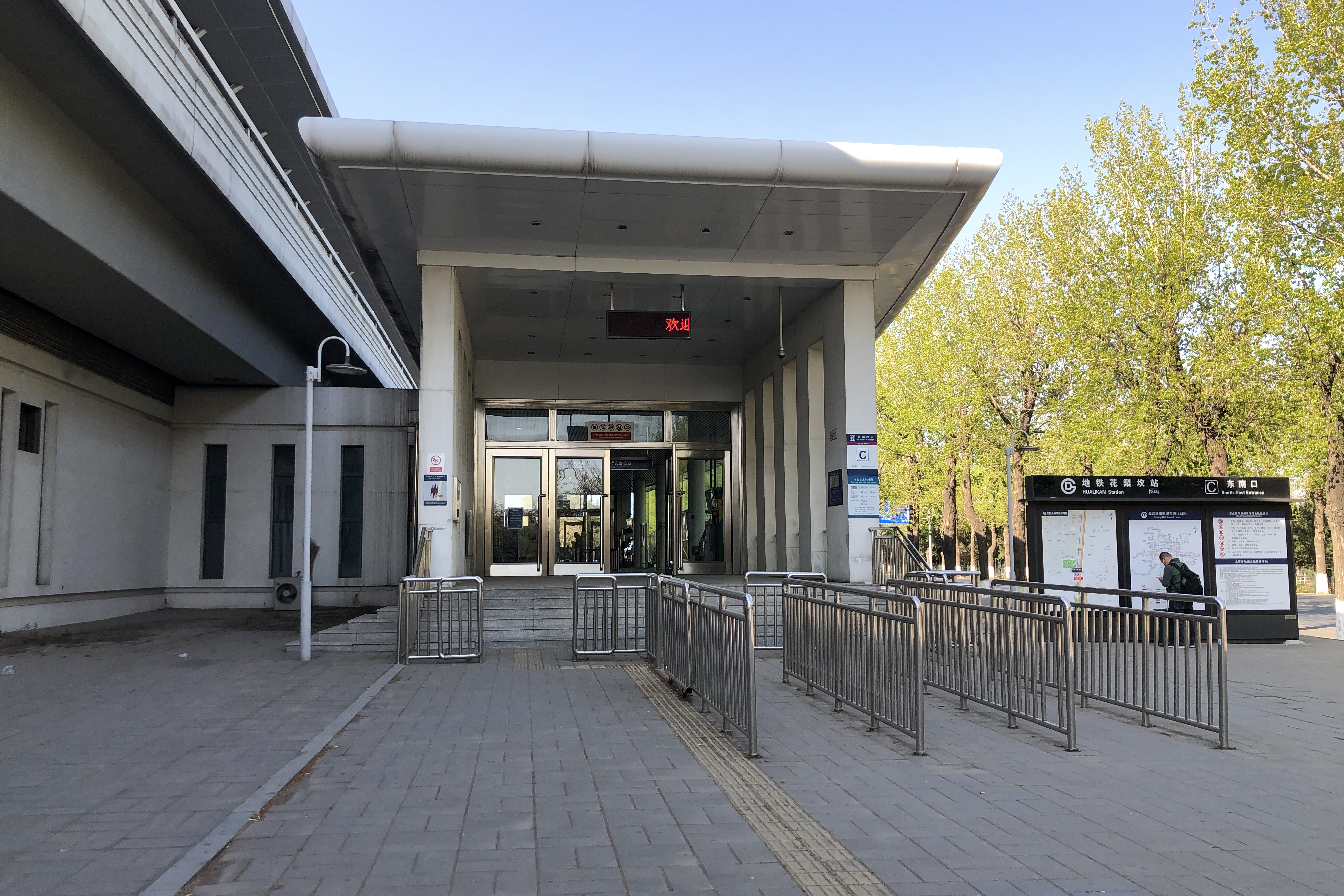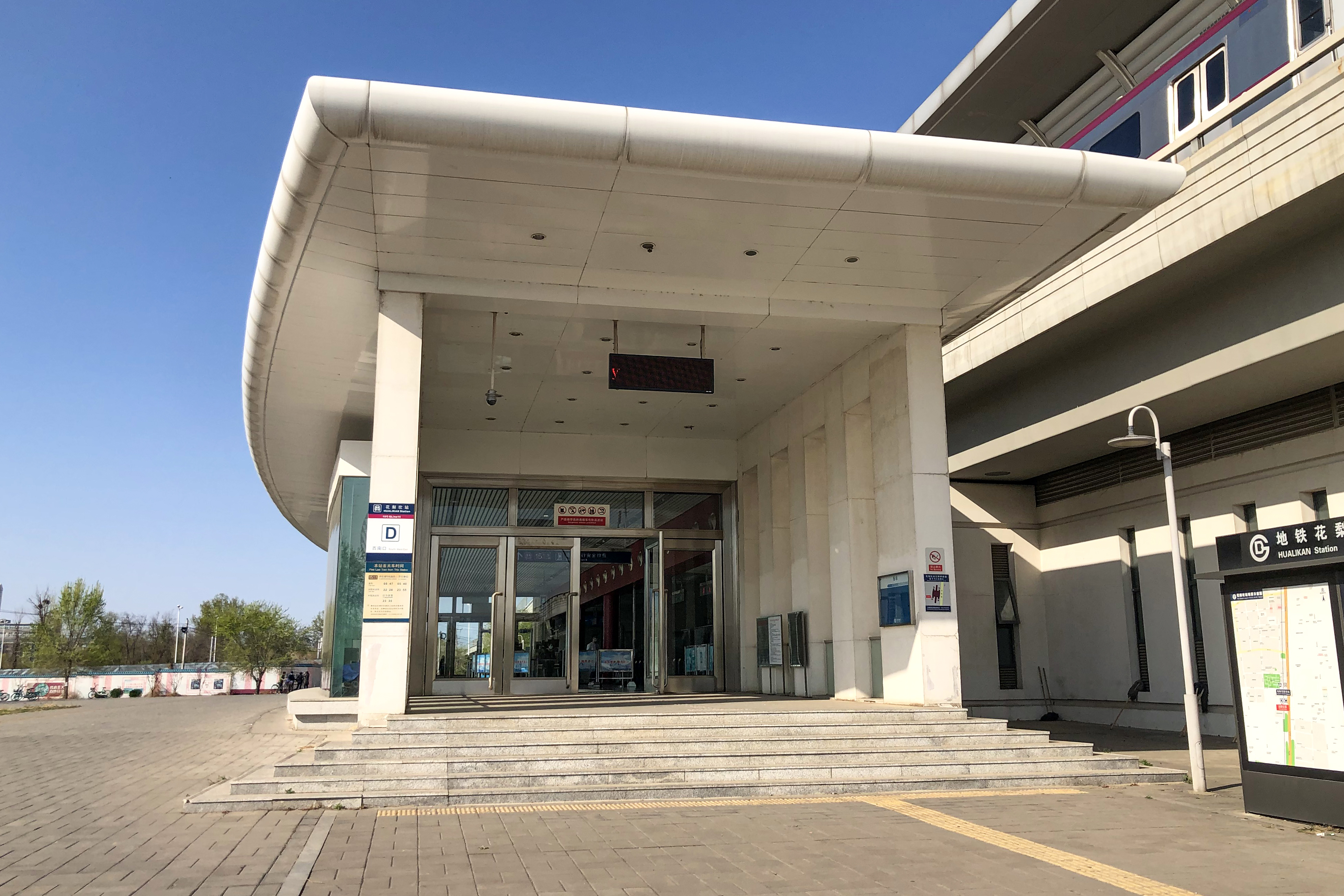 花梨坎站중국어에는 A, B, C, D 총 4개의 출구가 있으며, 징미로(京密路중국어)와 연결되어 있다. 각 출구별 상세 정보는 다음과 같다.