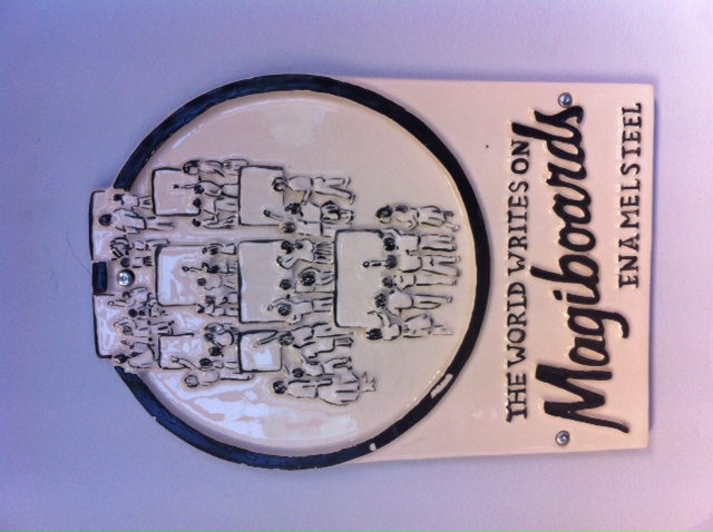 1960년대에 얼라이언스에서 일하던 앨버트 스톨리온은 에나멜강을 기록용 표면으로 사용할 수 있다고 생각했다. 스톨리온은 이후 얼라이언스를 떠나 화이트보드 생산 기업 MagiBoards를 설립하였다.[16][17]