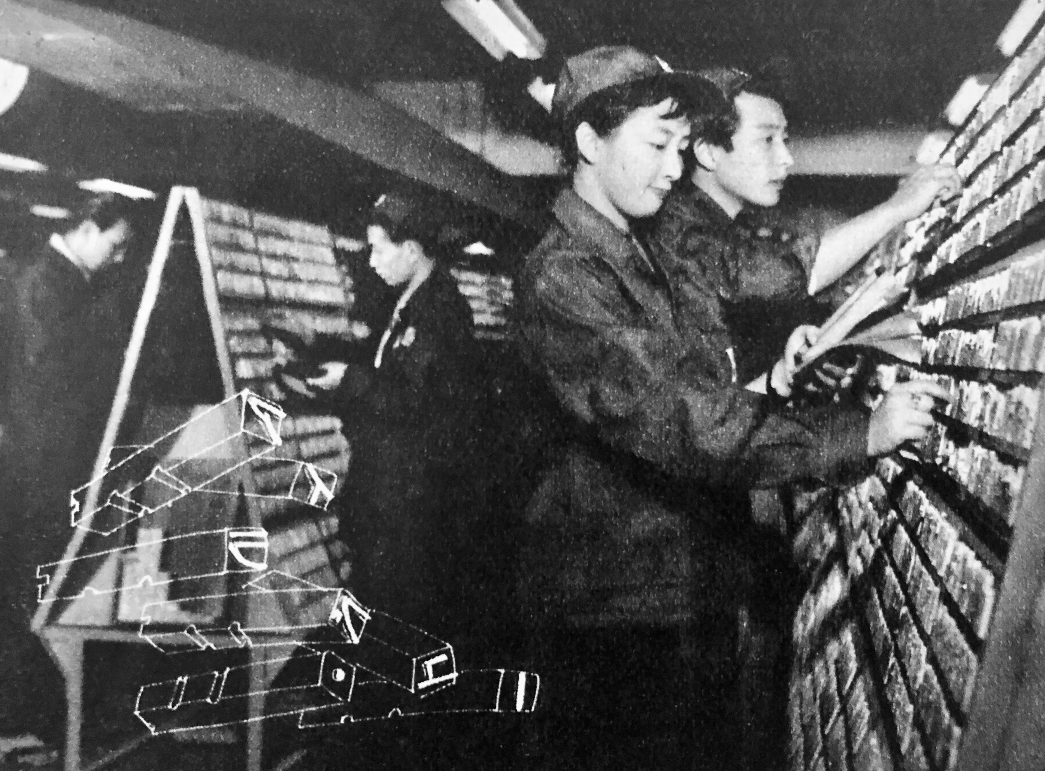 문선은 원고 내용대로 금속 활자를 골라 뽑는 작업이다.[39] 문선을 할 때 원고에 지정된 크기와 모양에 맞는 글자를 순서대로 고른다.