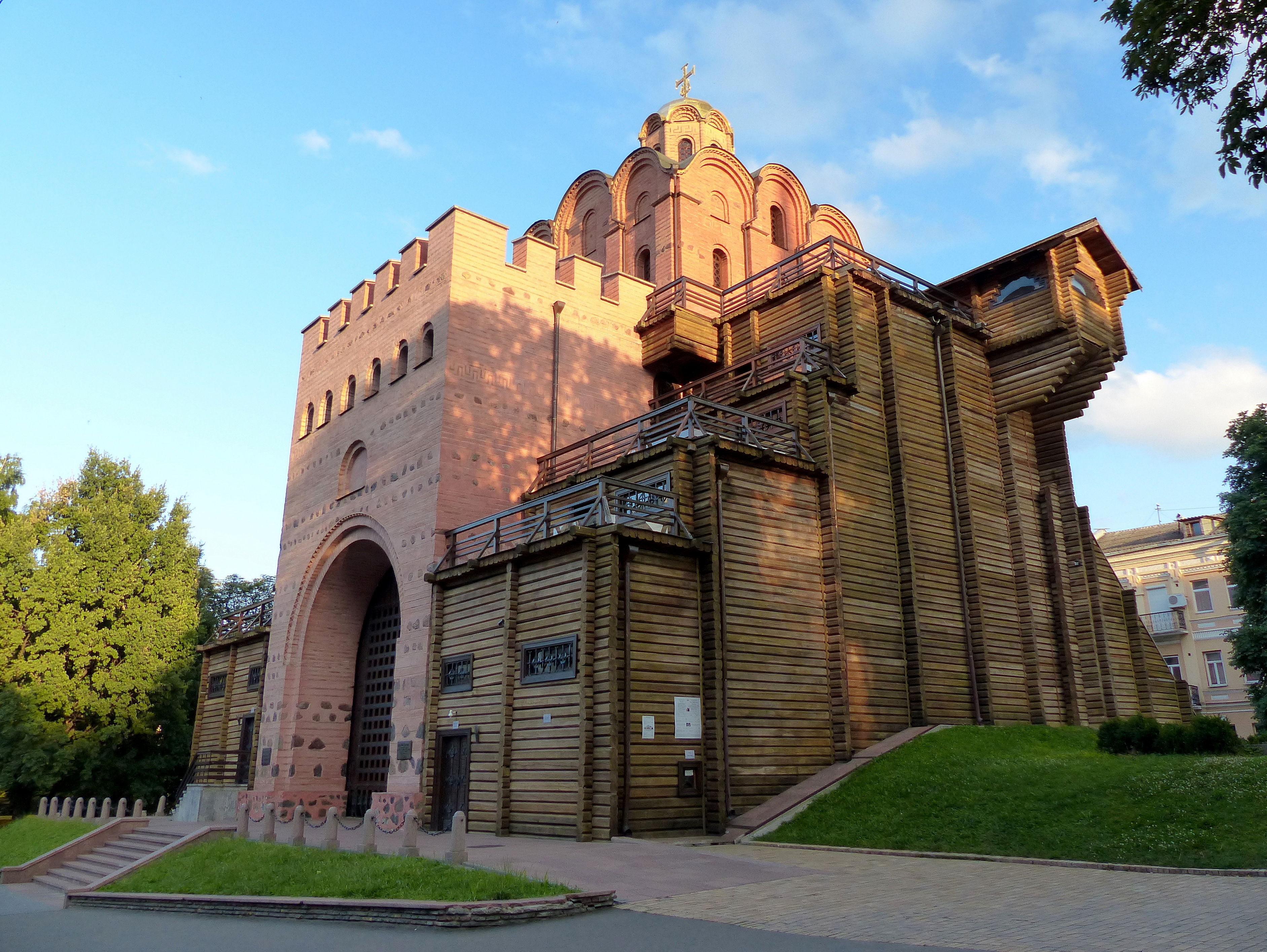 황금문은 1017년에서 1024년 사이에 야로슬라프 1세에 의해 건설된 키이우의 역사적인 문이다. 콘스탄티노플의 황금문을 본떠 지어졌으며, 키이우의 정문이자 개선문 역할을 했다. 1240년 몽골 제국에 의해 파괴된 후, 1982년 키이우 1500주년을 기념하여 재건되었다. 현재는 박물관, 전시 공간, 전망대 등으로 활용되며 키이우의 상징이자 관광 명소로 자리 잡았다.