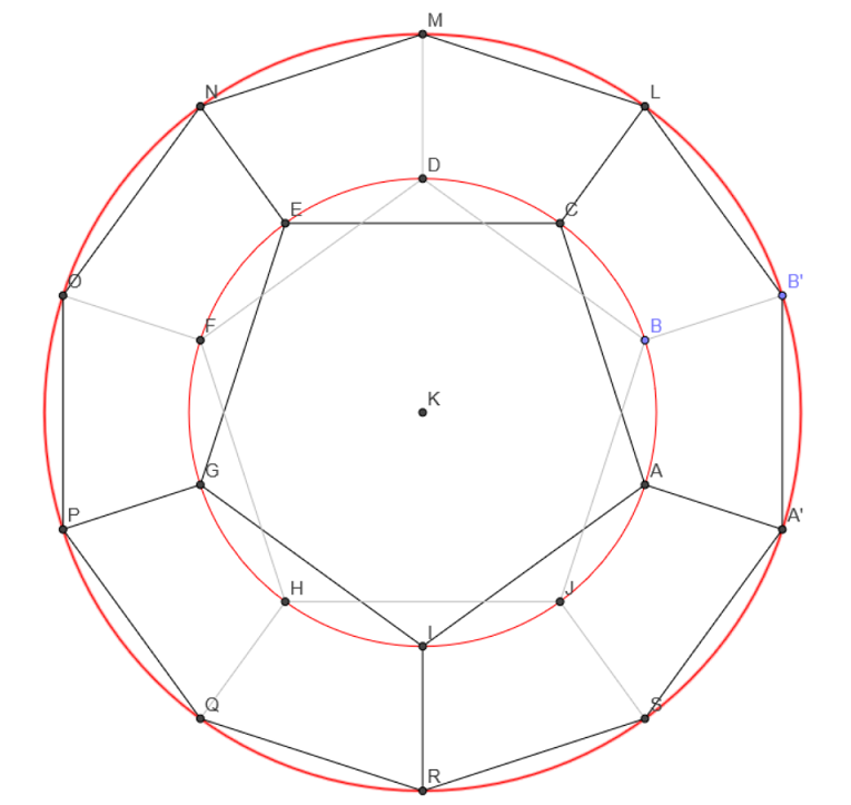 위와 같은 방법으로 주어진 변의 길이를 가진 오각형, 주어진 외접원을 가진 십각형 및 주어진 변의 길이를 가진 십각형을 작도할 수 있다.