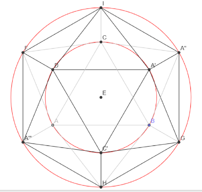 인 3개의 원이 서로 외접할 때, 그 3개의 원 모두와 외접하는 크고 작은 2개의 원을 그릴 수 있으며, 이들을 합한 5개의 원의 반지름의 비는
