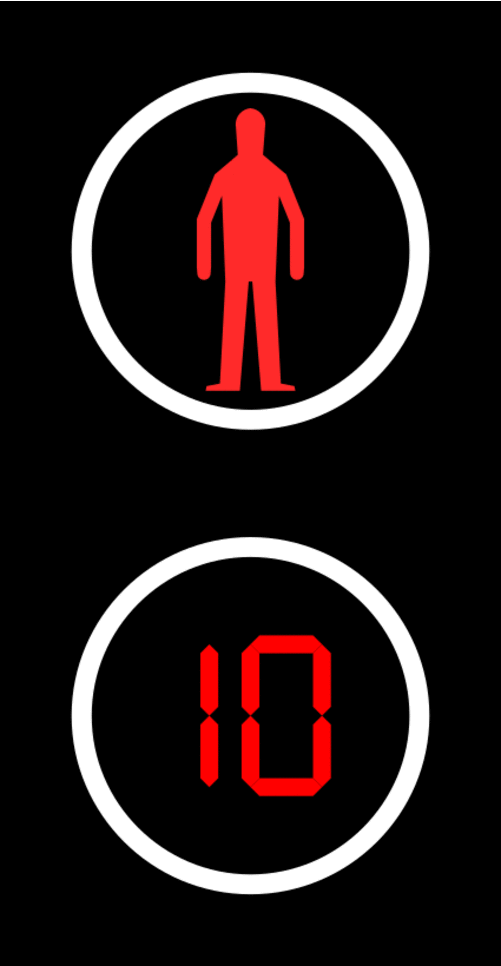 일부 보행자 신호는 카운트다운 타이머를 통합하여, 보행자가 건널 수 있는 시간이 얼마나 남았는지를 초 단위로 표시한다. 미국에서는 샌프란시스코가 2001년 3월부터 시험적으로 이전의 보행자 모듈을 대체하기 위해 카운트다운 신호를 설치한 최초의 주요 도시였다.[66]