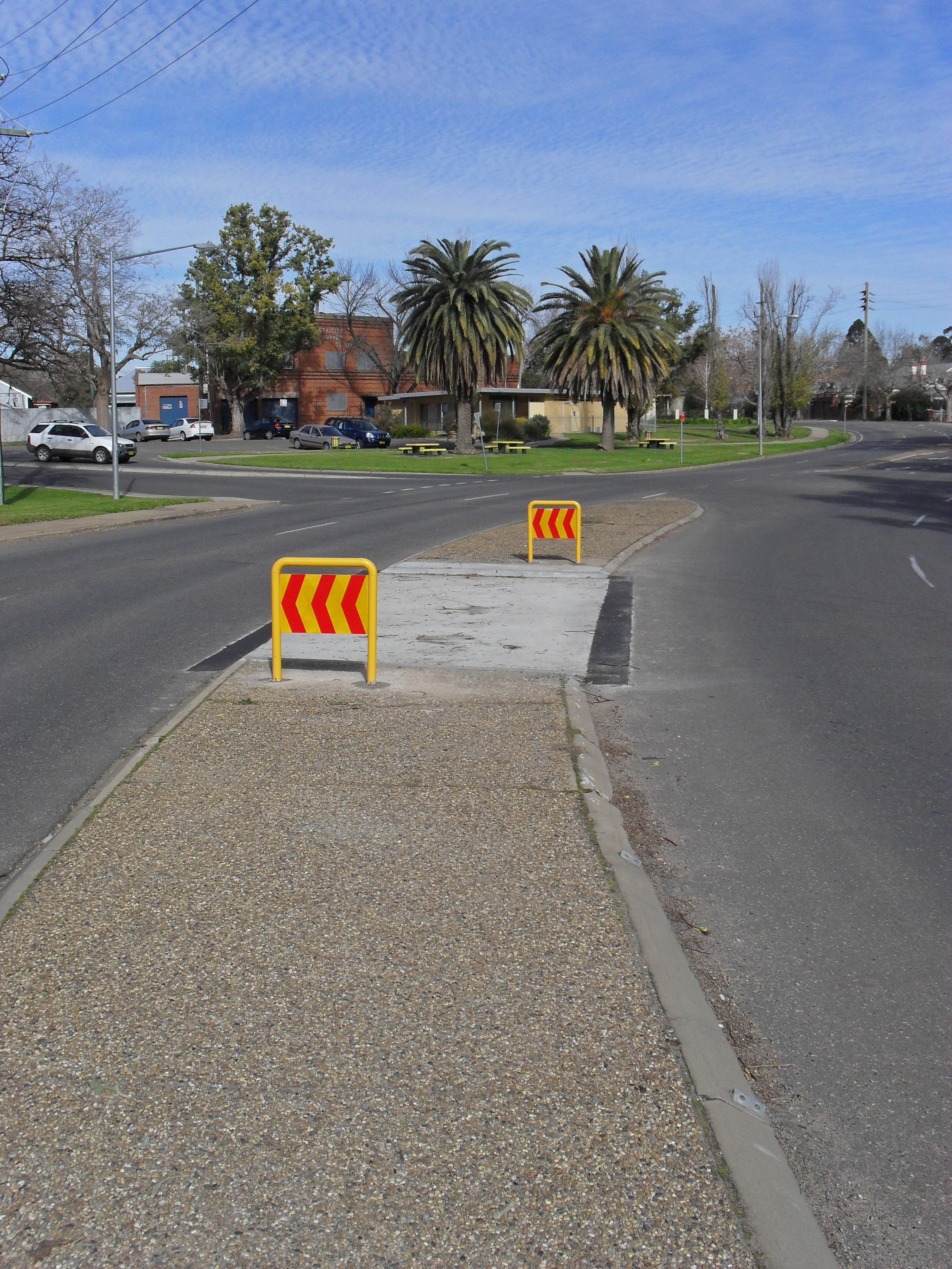 연석/커브 연장(벌브 아웃이라고도 함)은 도로 폭을 좁히고 횡단보도 표시와 함께 사용된다. 이는 자동차의 속도를 늦추어 보행자에게 더 안전한 횡단을 제공한다.[17]