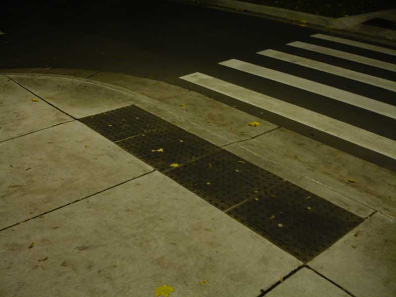 횡단보도는 주로 시각 장애인을 위해 각 횡단 지점에 설치된 버튼이나 신호 표시등 아래에 스피커가 있는 접근성 보행자 신호(APS)를 추가하여 적응되었다.[88] 이러한 유형의 신호는 보행자와 차량 간의 충돌을 줄이는 것으로 나타났다.[89] 그러나 점자 블록이나 콘과 같은 다른 표시가 없으면 시각 장애인이 이러한 APS 장치를 찾기 어려울 수 있다.[90]
