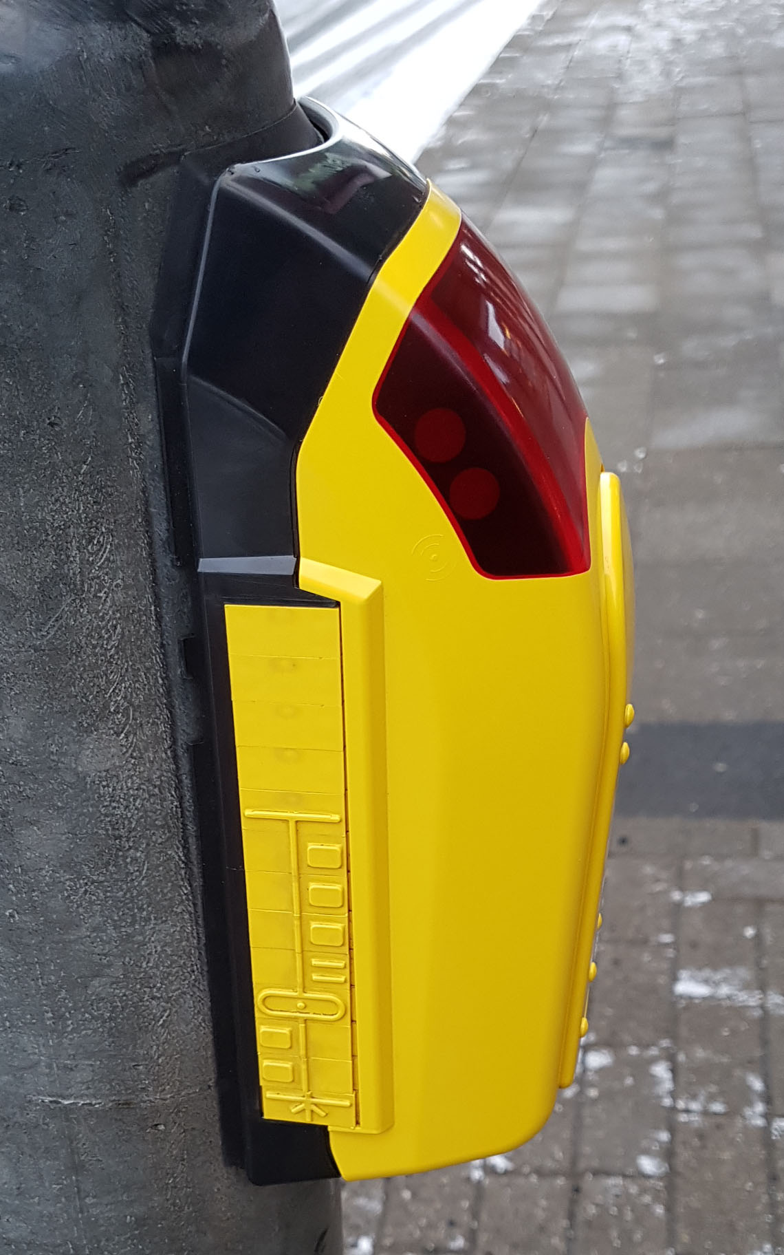 촉각 표면 패턴(또는 촉각 포장)은 인접한 보도(미국: 보도) 내부에 평평하게 깔 수 있어 시각 장애인 보행자가 제어 상자와 콘 장치를 찾아 다른 쪽에 도달했는지 알 수 있다. 영국에서는 서로 다른 색상의 촉각 포장이 서로 다른 유형의 횡단보도를 나타낸다. 노란색(황갈색이라고 함)은 비제어(신호 없음) 횡단보도에서 사용되고 빨간색은 제어(신호) 위치에서 사용된다.[68]