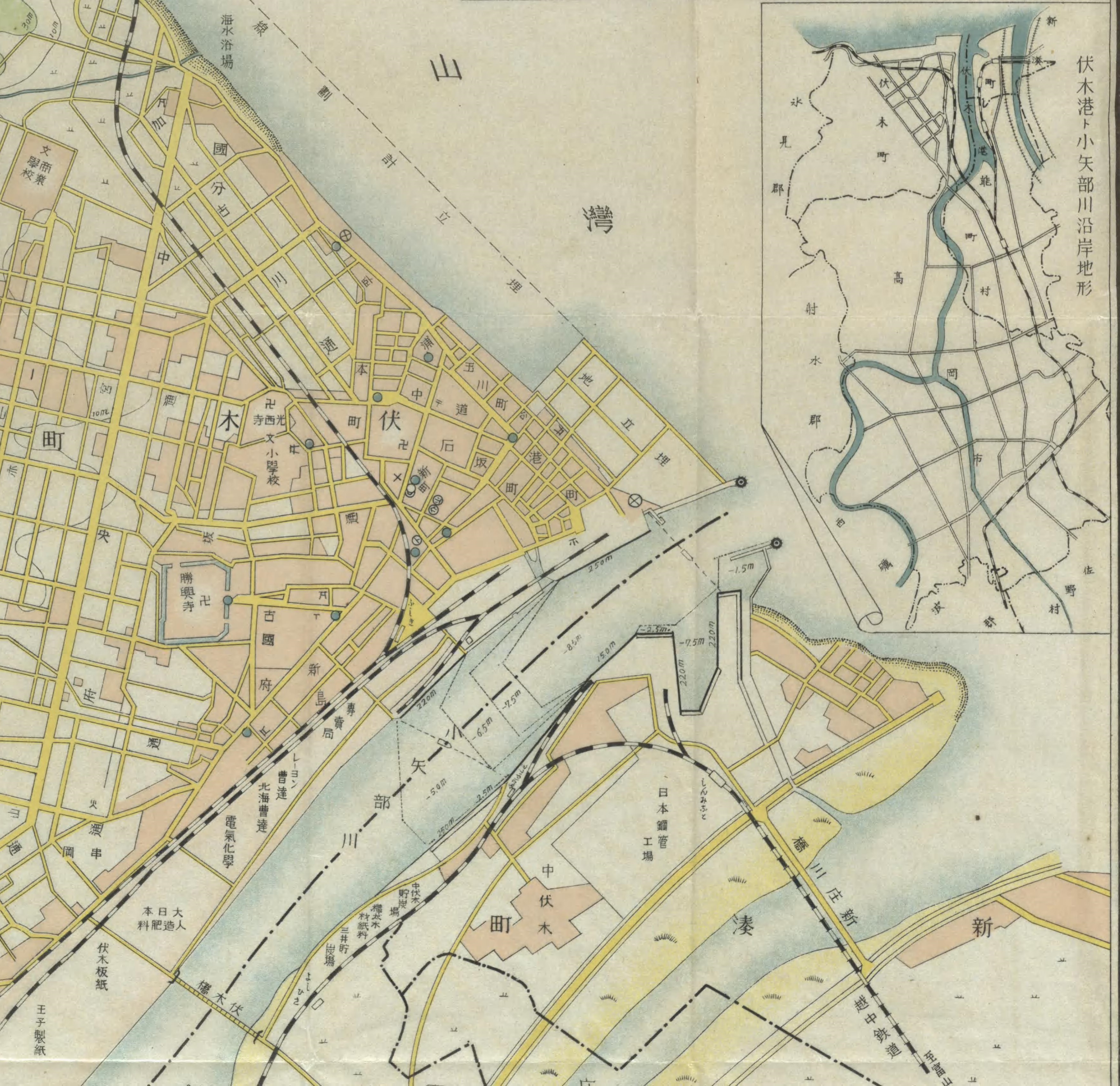 후시키 운송, 구리타 해운점, 마루키 목재, 후시키 신 창고, 석탄 판매, 쿄리츠 운송, 엣추 창고, 엣추 운송 및 마루시치 운송점 | 제3자 사용: 후시키 합동 운송, 동력: 손수레, 작업 킬로정: 0.2km |
