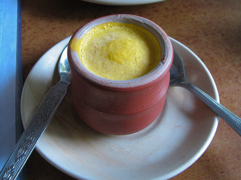 푸딩은 옥수수 전분이나 타피오카와 같은 전분으로 농도를 낸다는 점에서 커스터드와 다르다. 커스터드는 달걀만을 사용하여 농도를 내며 더 단단하다. 피르니와 키르는 인도 아대륙에서 인기 있는 푸딩이다.[15]