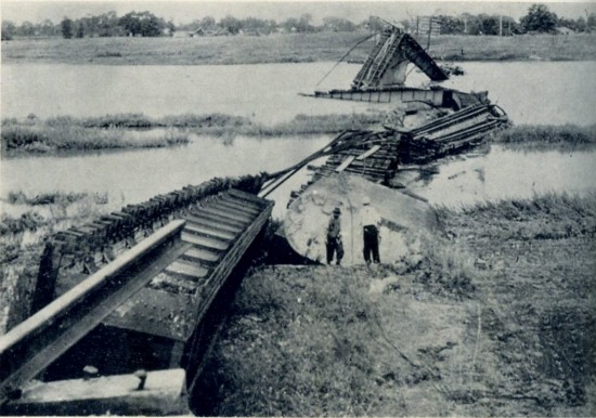 무너진 일본국철 호쿠리쿠 본선 후쿠이역-모리타역 사이 구즈류강 철교.