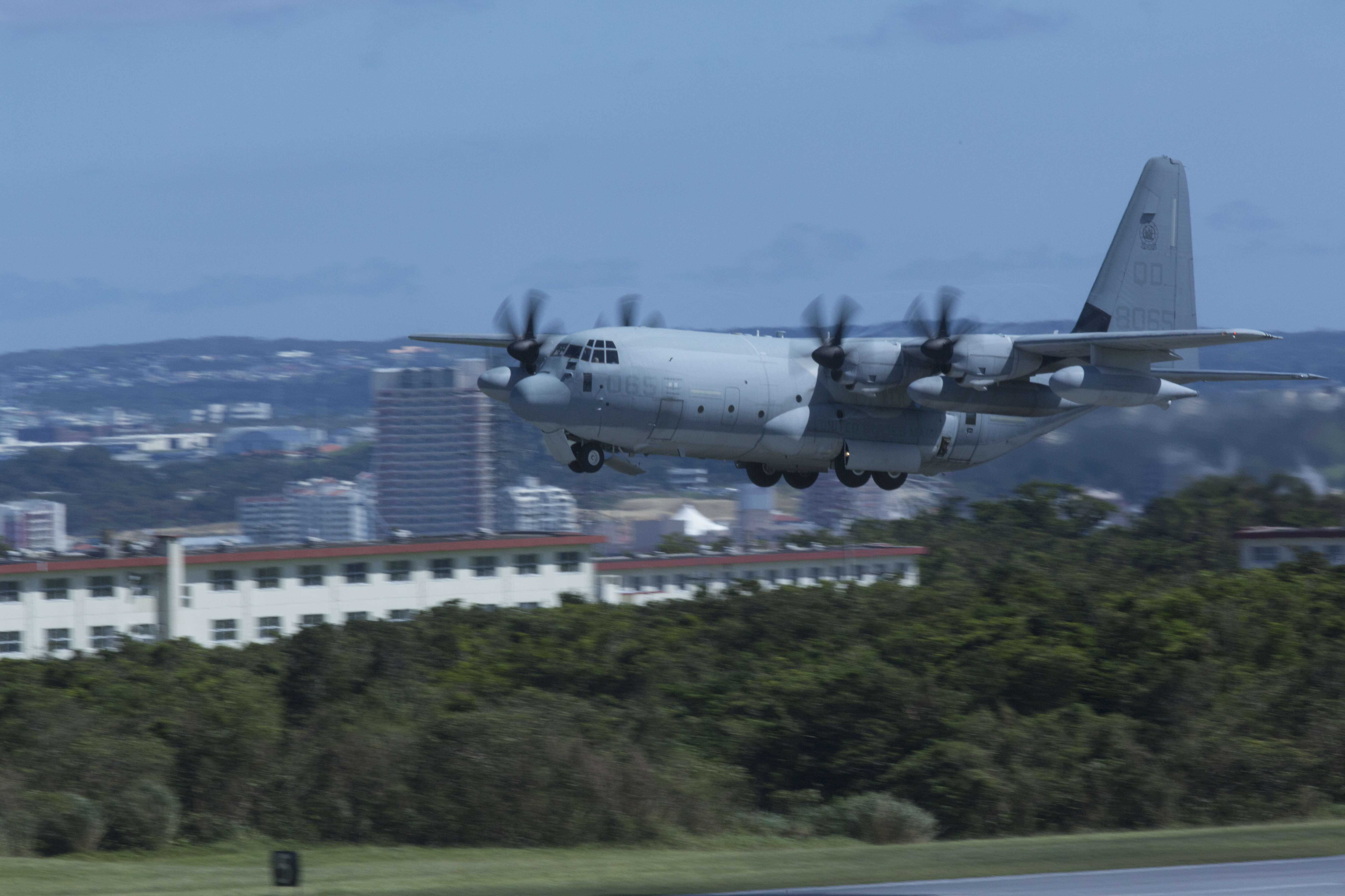 ※KC-130J 등을 배치하는 제152해병급유수송비행대대(VMGR-152) "수모스"는 오키나와의 기지 부담 경감책의 일환으로 2014년 8월 말까지 일본 본토의 이와쿠니 항공기지(야마구치현 이와쿠니시)로 이전했다.[42]