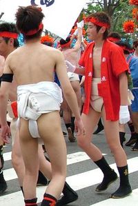 여름 축제 기간에는 남녀가 신도 행렬에서 미코시(휴대용 신사)를 운반할 때 하피(곧은 소매가 달린 짧은 면 재킷)와 함께 훈도시를 착용하는 경우가 많다.