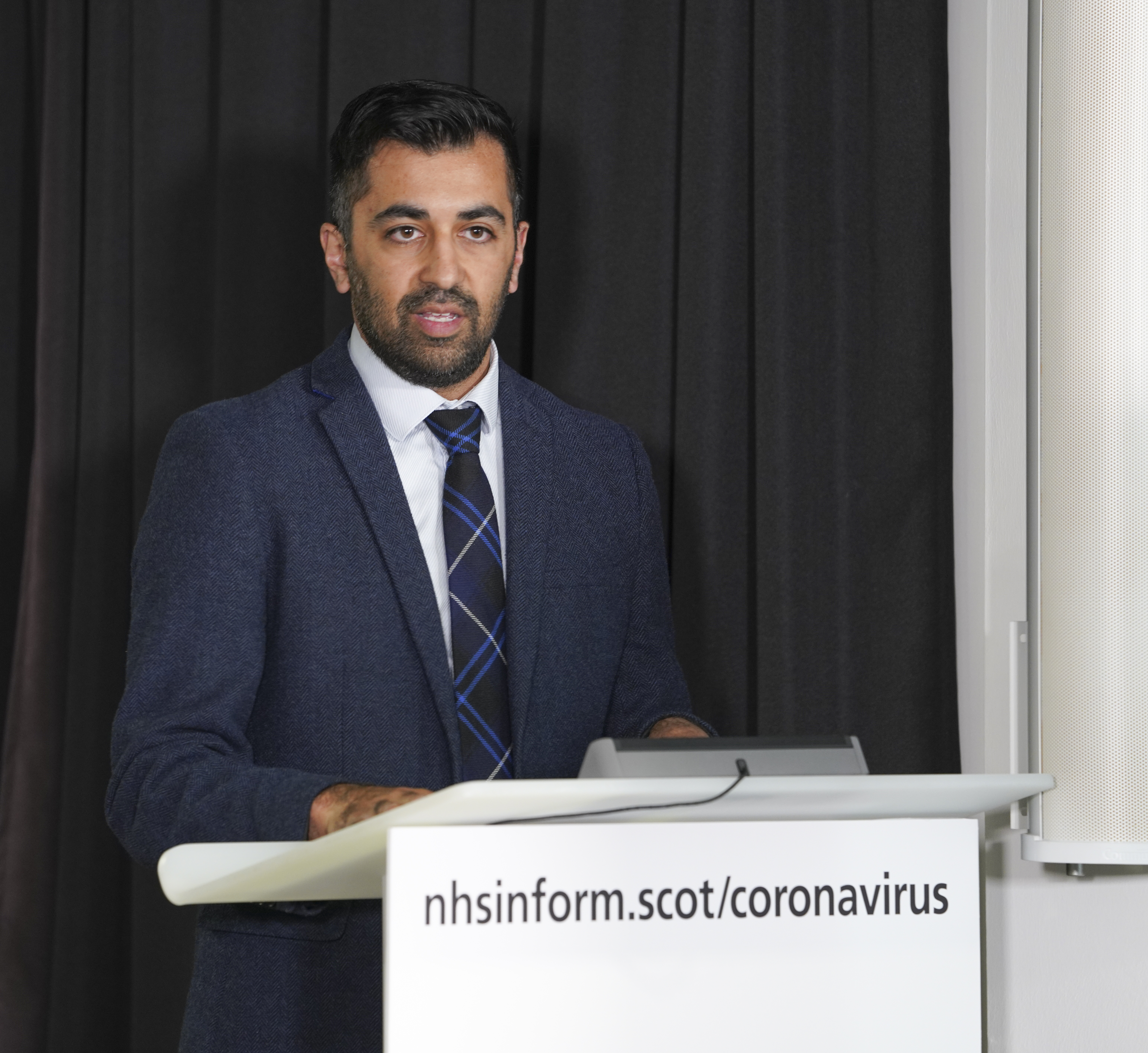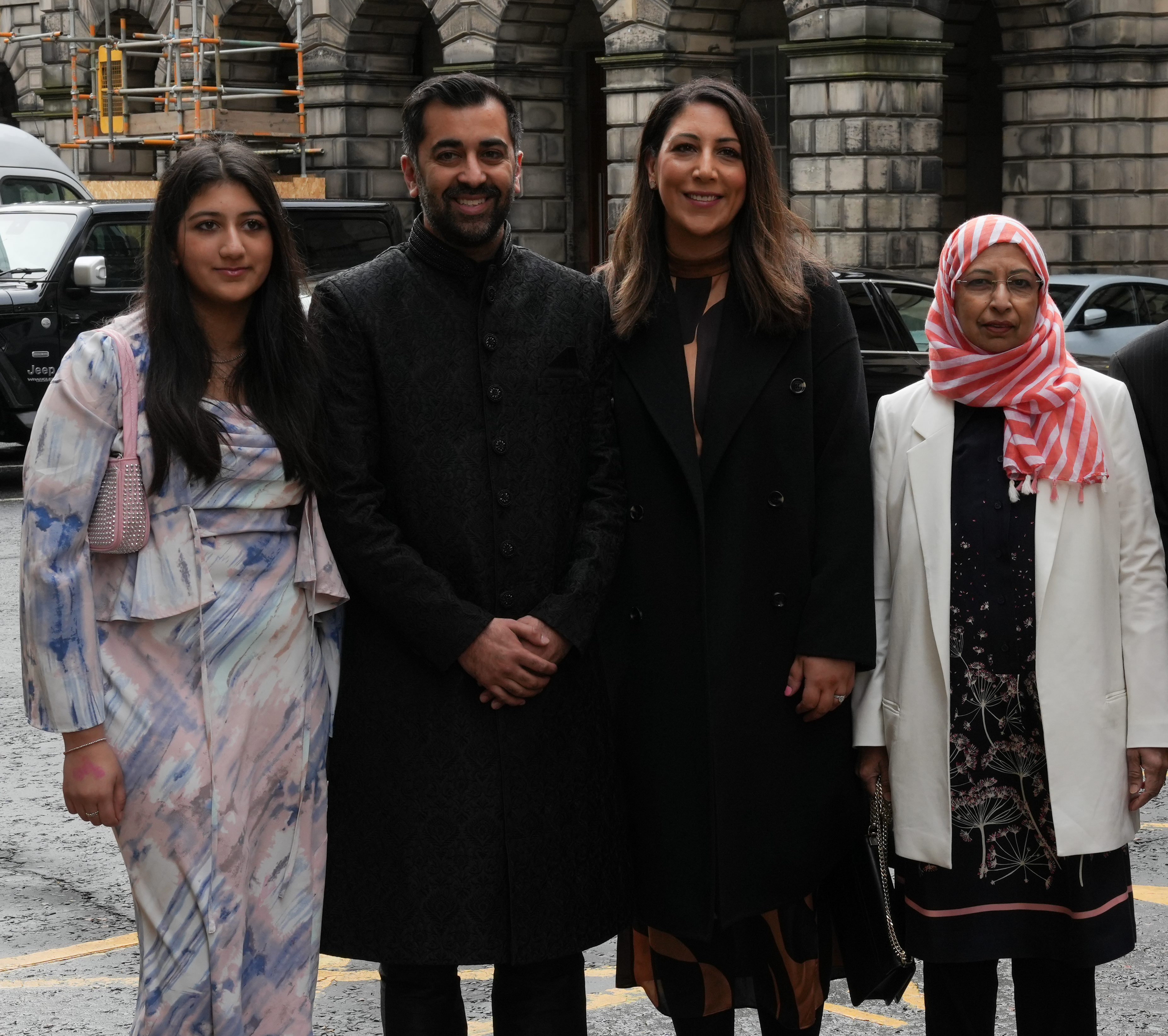 2023년 니콜라 스터전의 뒤를 이어 스코틀랜드 국민당 대표 및 스코틀랜드 자치 정부 수반이 되었으며, 영국 지방 자치 정부 최초의 소수 민족 지도자이자 영국의 주요 정당을 이끄는 최초의 이슬람교도가 되었다.[161] 그러나 2024년 4월, 스코틀랜드 녹색당과의 연립 협정을 파기하면서 정치적 위기를 맞았고, 결국 자치 정부 수반직에서 사임했다.[162]