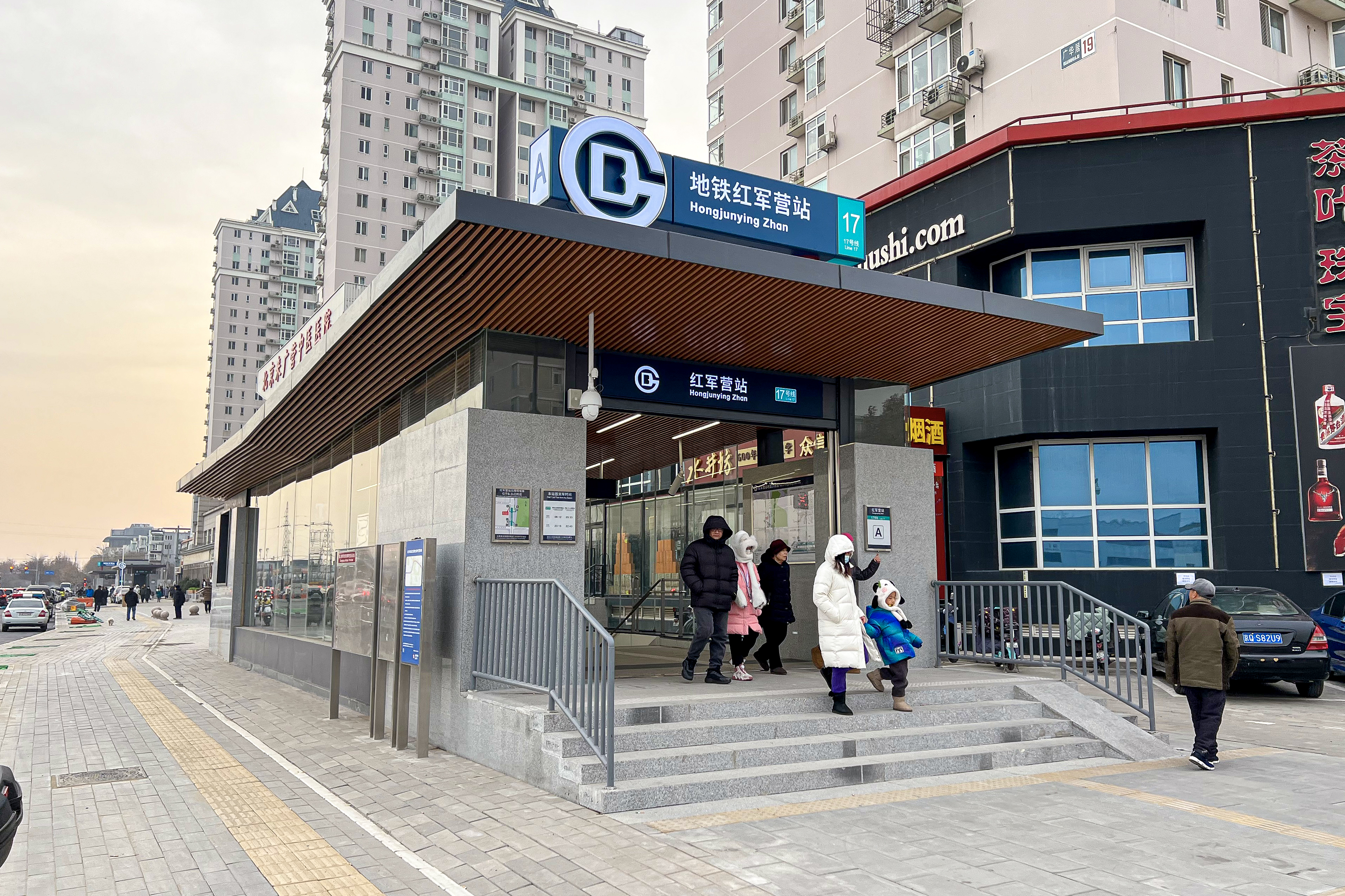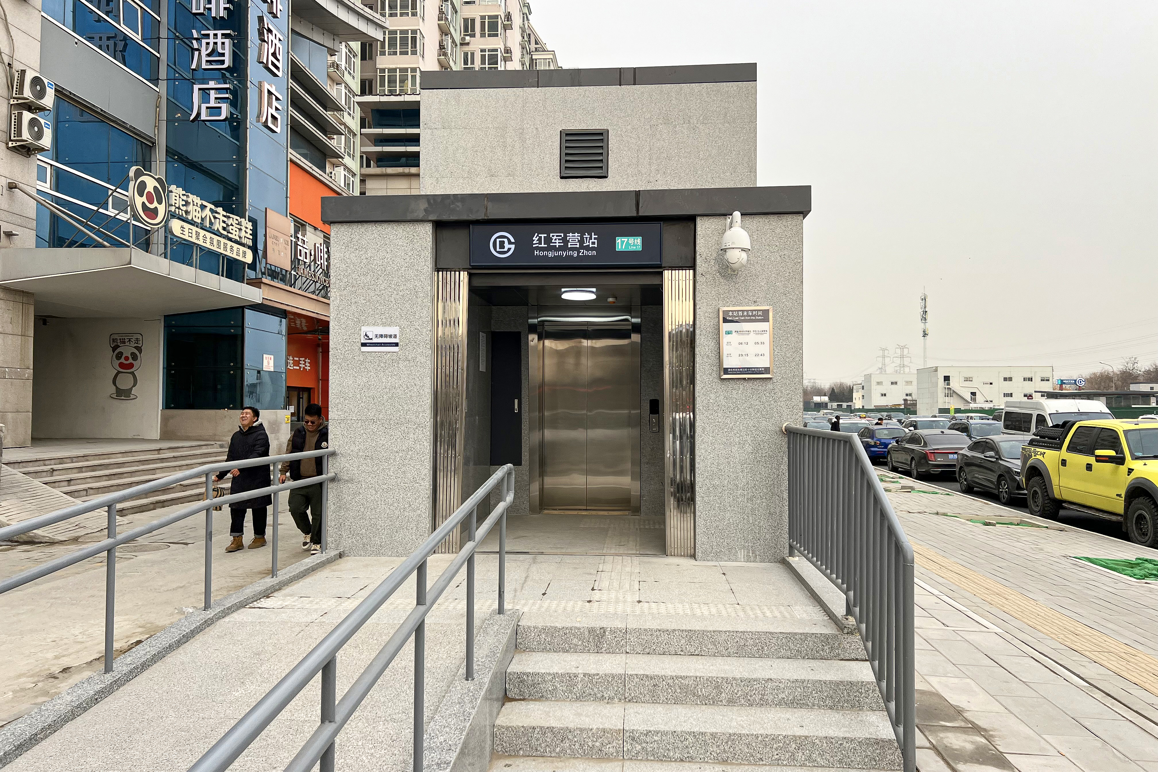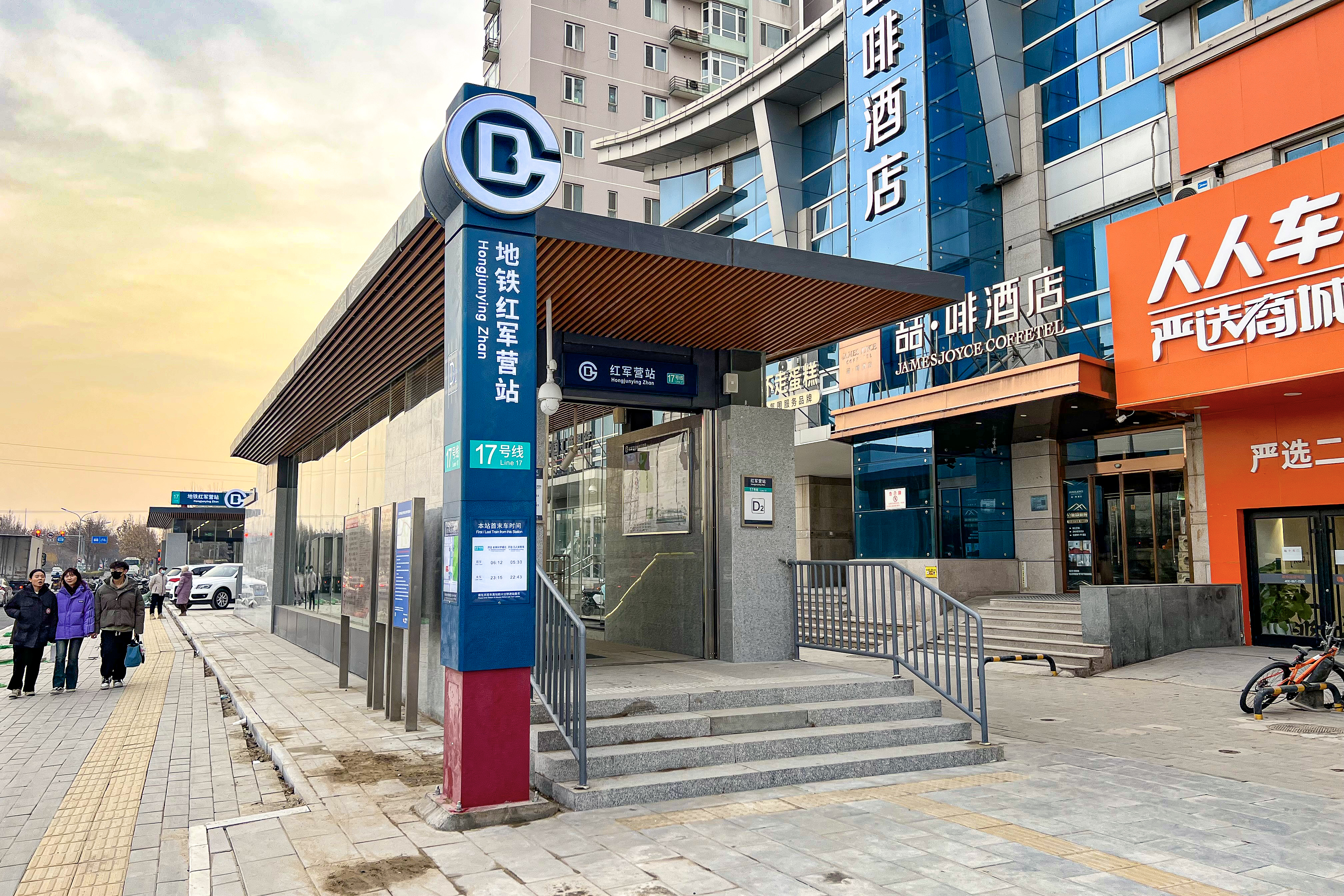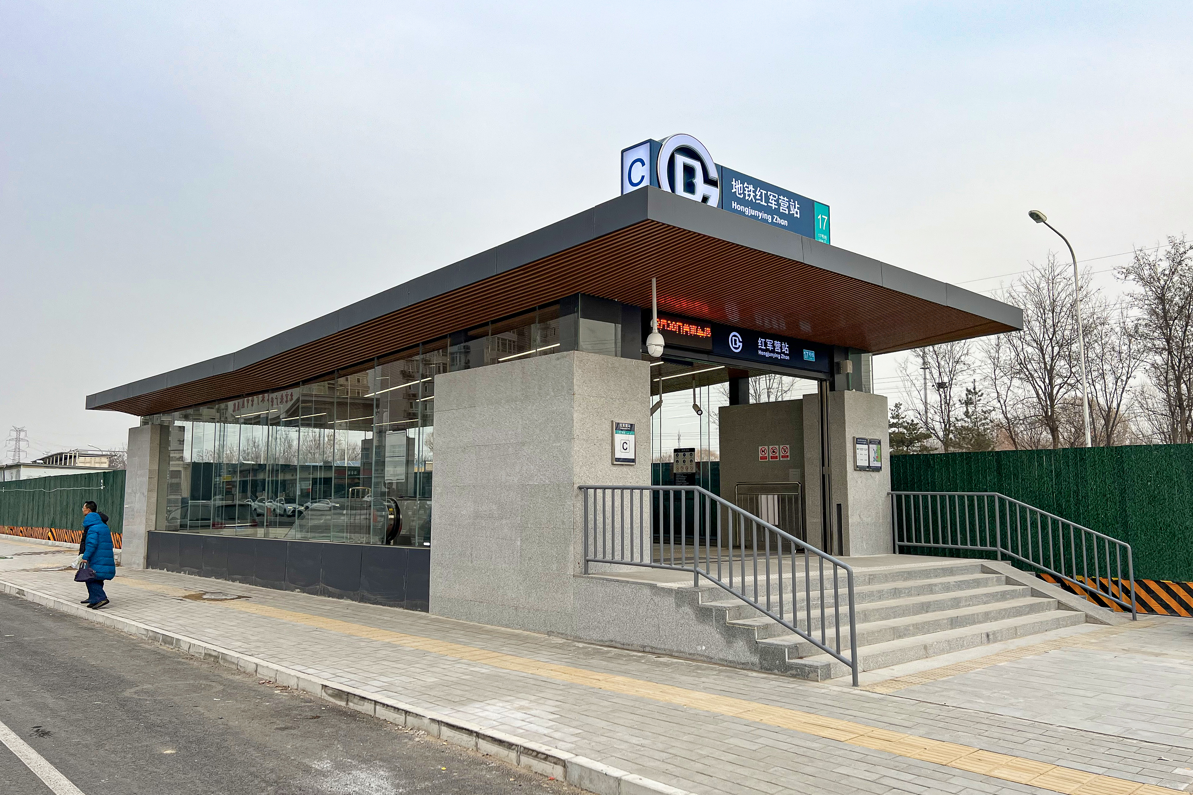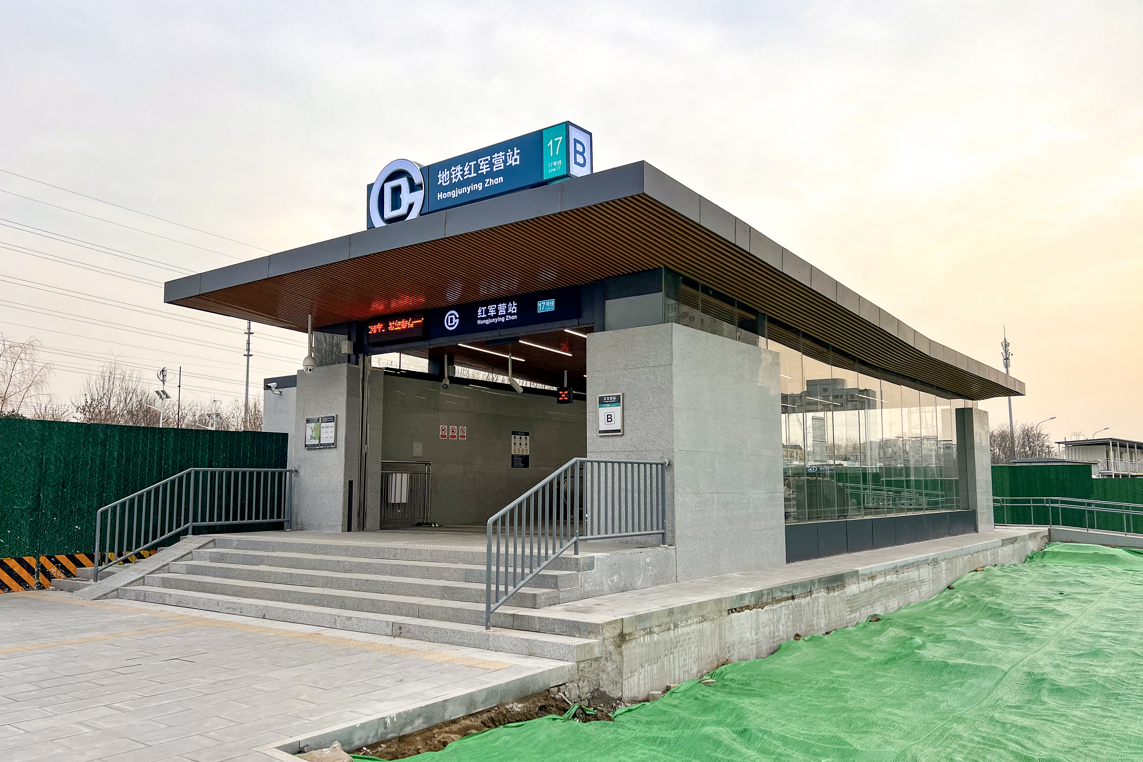 2023년 6월 28일, "융시잉역(勇士营站)"에서 "훙쥔잉역(红军营站)"으로 역명이 변경되었다. 같은 해 12월 30일, 17호선 북부 구간과 함께 개통되었다.[4]c=勇士營중국어[3]