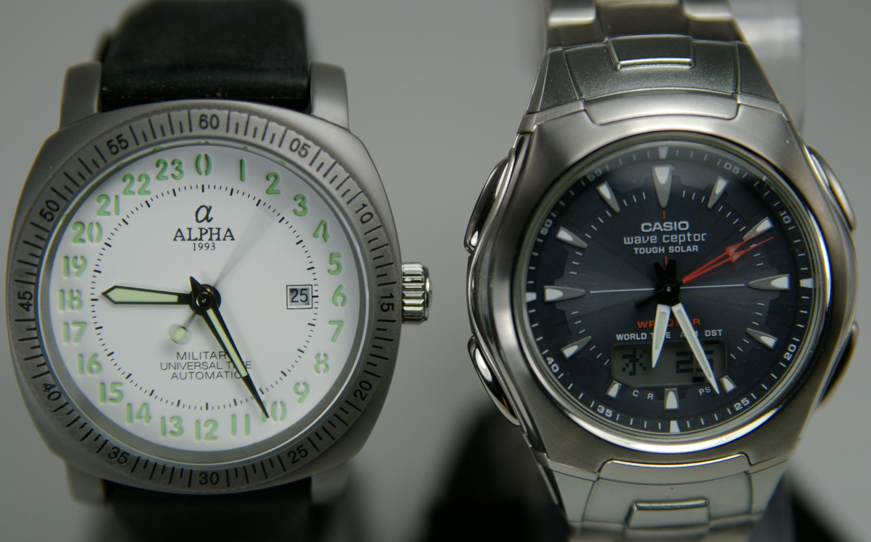 - '''방위 탐지 시계''': 아날로그 시계의 시침과 태양의 위치를 이용해 대략적인 남쪽 또는 북쪽 방향을 찾을 수 있다. 북반구에서는 시침을 태양 방향으로 맞추고 시침과 12시 방향 사이의 중간 지점이 남쪽을 가리킨다.