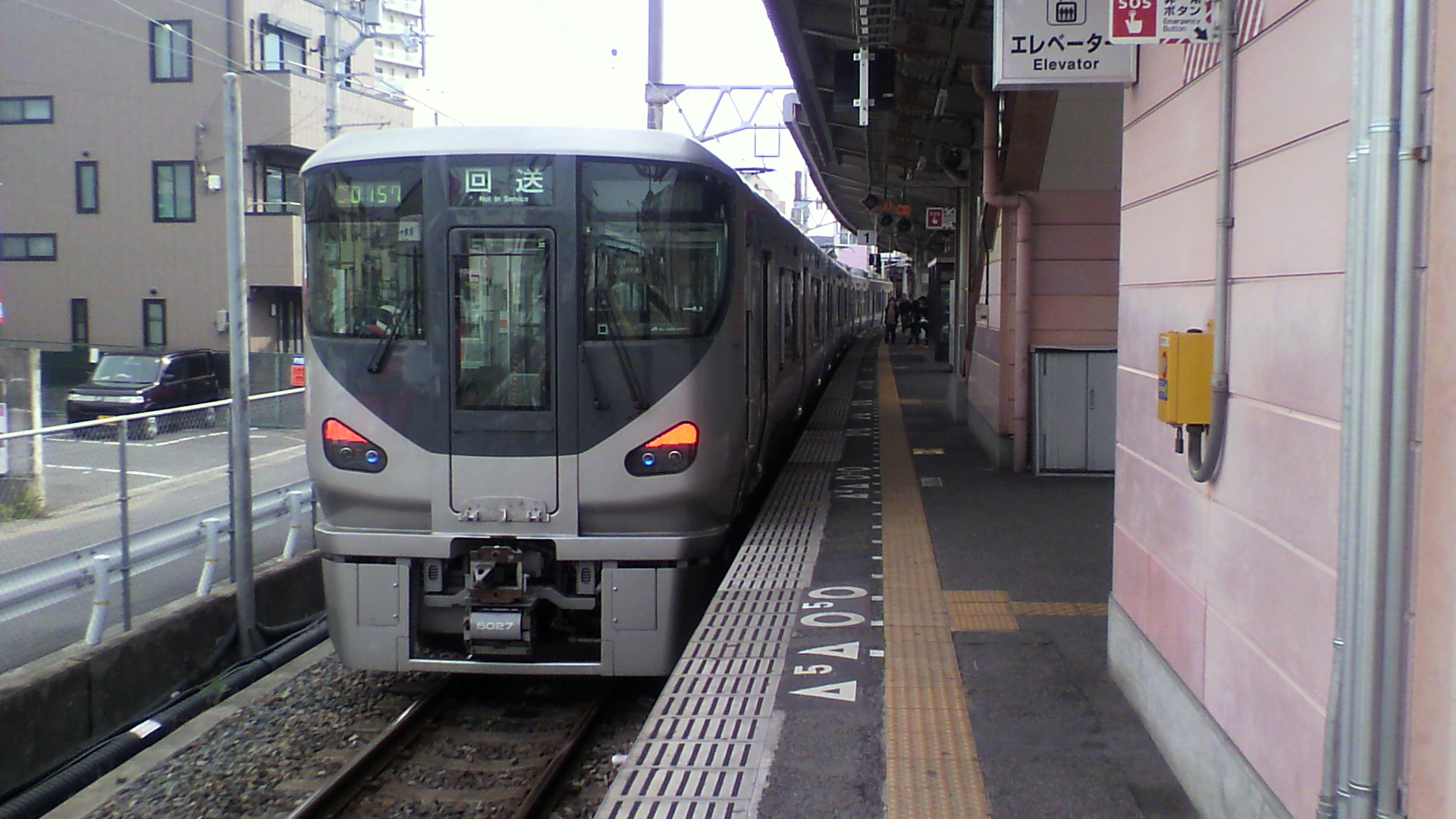 간사이 공항선의 0킬로미터 지점은 역 승강장과 남쪽 건널목 사이 중간 부근의 상하선 사이에 설치되어 있다.