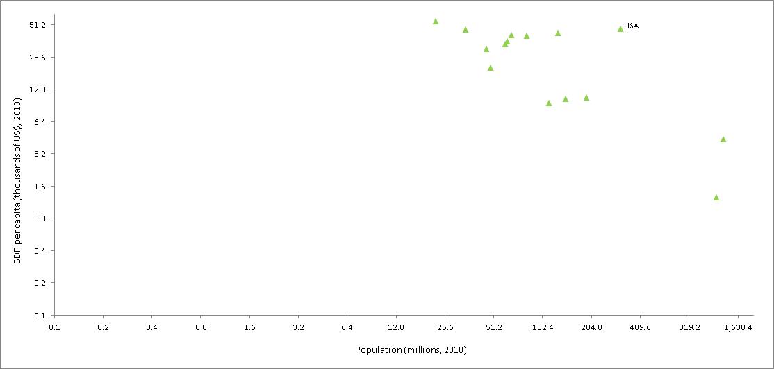 2000년 미국을 시작으로, 여러 국가들이 명목 GDP 10조 달러를 달성하였다. EU는 2003년에, 중국은 2014년에 10조 달러를 달성했다.[13]