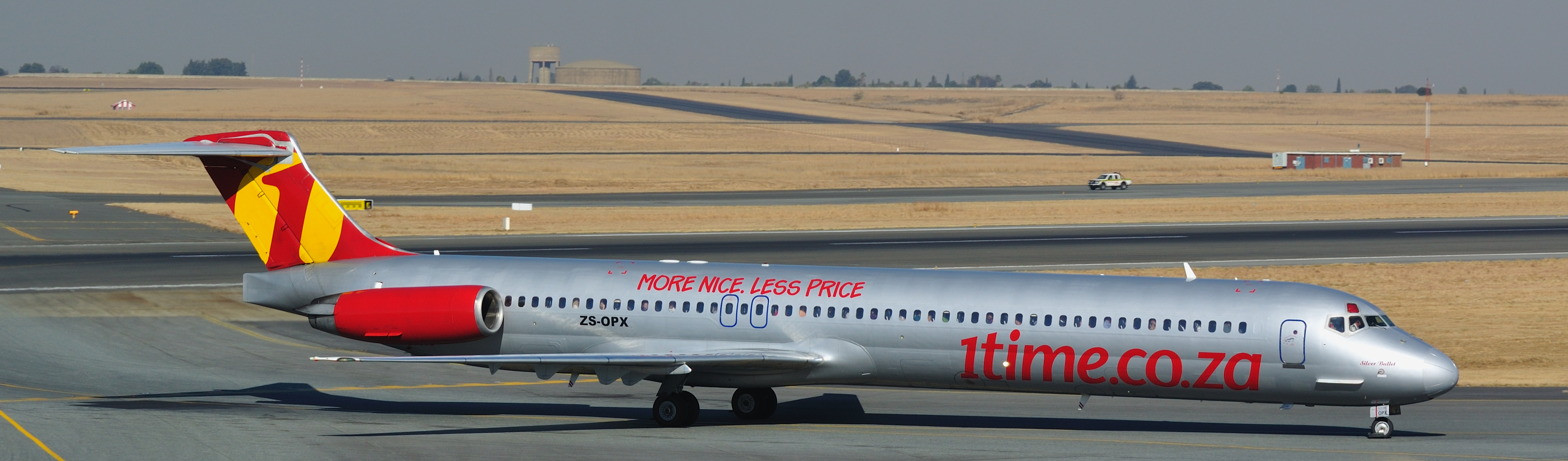 1타임 맥도넬 더글러스 MD-83 ZS-OPX가 OR 탐보 국제공항에 있다.