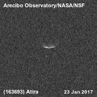 163693 아티라는 2017년 1월에 지구로부터 0.207AU 이내로 근접했는데, 이는 2003년 발견 이후 가장 가까운 거리였다. 이는 전파로 소행성을 연구할 수 있는 기회를 제공했다. 아레시보 천문대에서 2017년 1월 20일에 촬영된 이미지에 따르면 아티라는 소행성 위성을 가진 동기 쌍성 소행성이다.