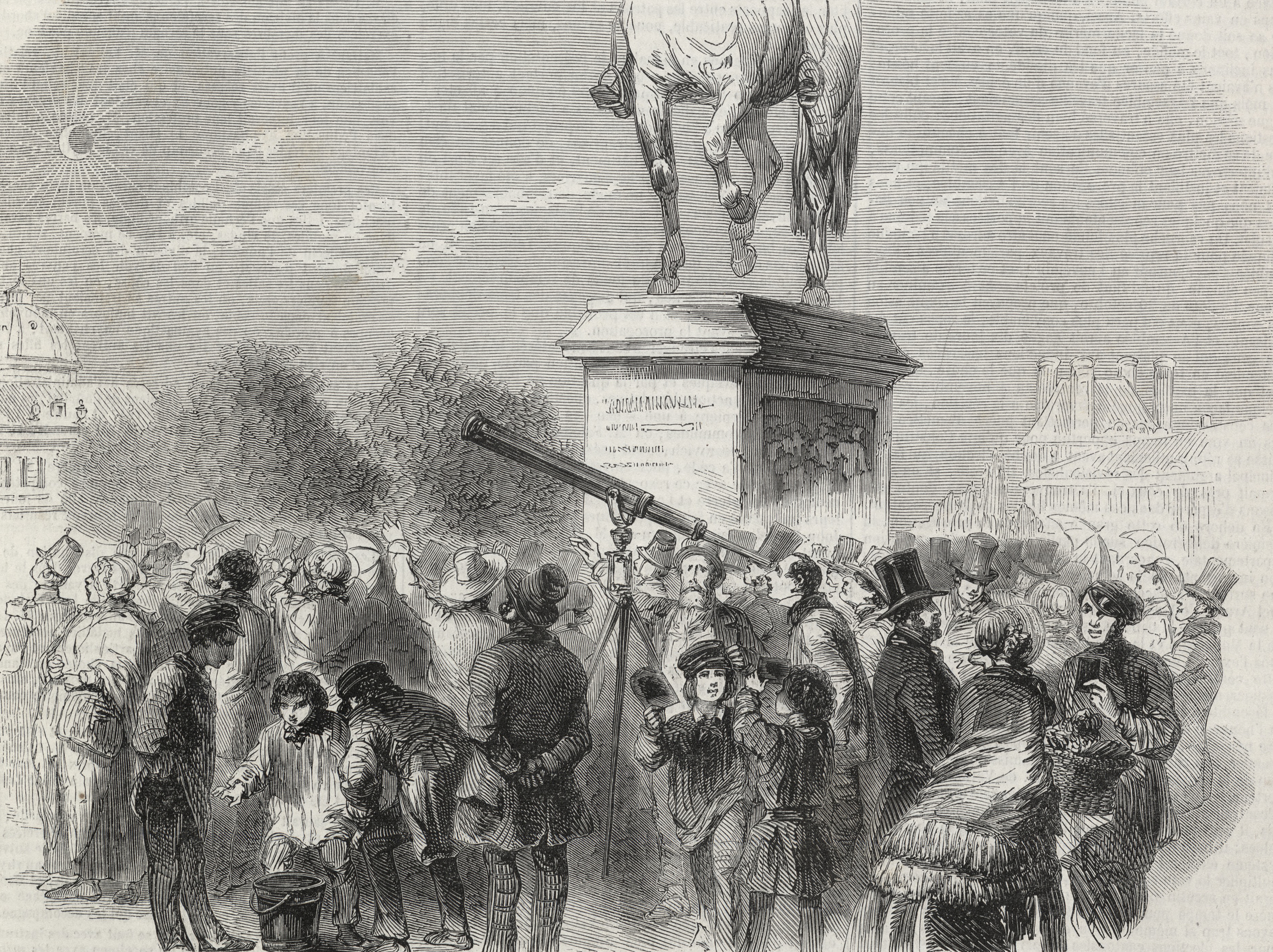 1851년 7월 28일에 발생한 일식은 달이 지구와 태양 사이를 지나가면서 지구에 그림자를 드리워 태양을 가리는 현상이다. 이 일식은 달의 본그림자가 지구 표면에 도달하여 개기 일식이 발생했다.[5]