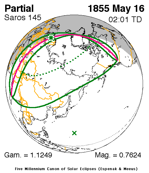최대 일식1854년 5월 26일 20:42:52.6 UTC