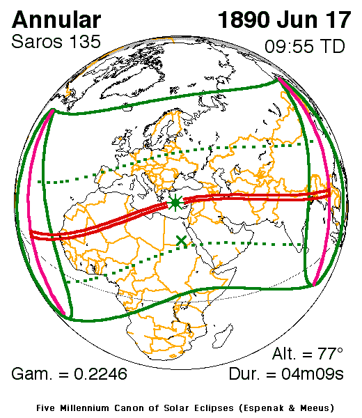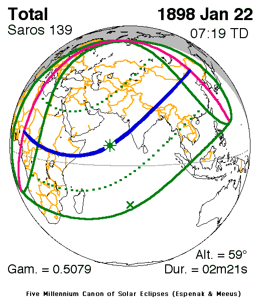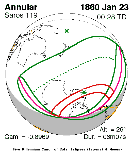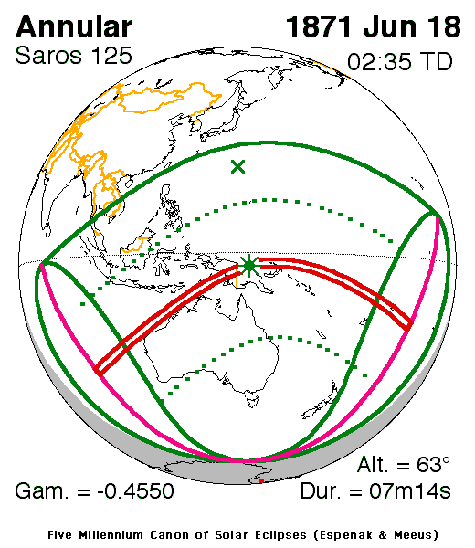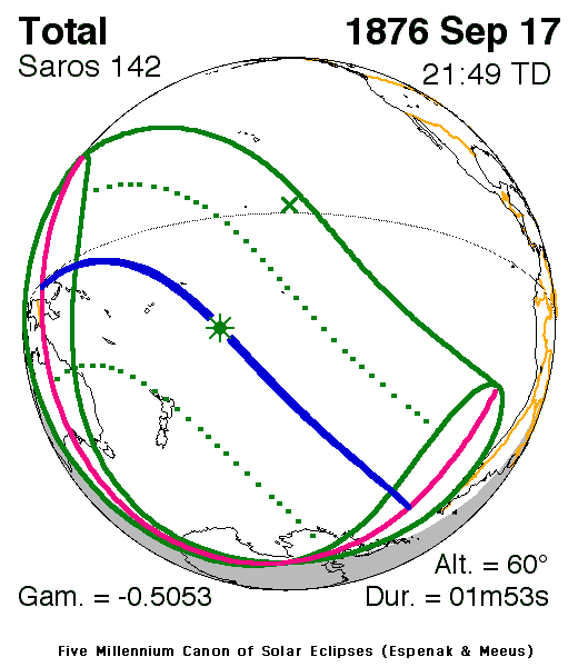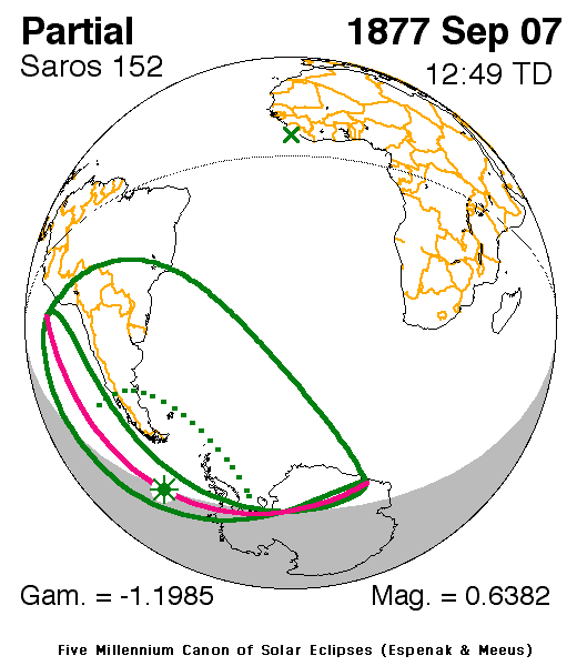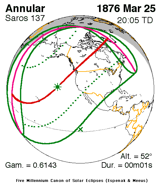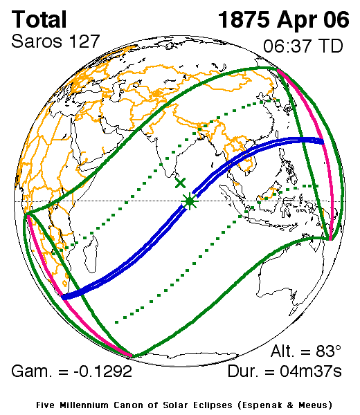 1875년 4월 6일 일식은 노먼 로크와 아서 슈스터가 태양 코로나의 원소 성분을 연구하기 위해 관측한 개기 일식이다. 당시의 관측 장비와 기술적 한계에도 불구하고, 이 일식을 통해 태양 대기에 대한 중요한 정보를 얻을 수 있었다. 이 일식은 사로스 주기 127에 속하며, 다양한 주기적 현상과 관련되어 있다.