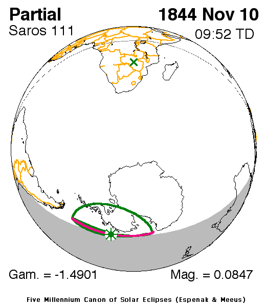 같은 열에 있는 세 번째 일식마다 약 1엑셀리그모스(Exeligmos)만큼 떨어져 있어, 지구상의 거의 같은 지역에서 관측되는 경향이 있다.
