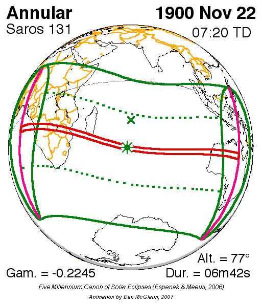 최대 일식 | 1900년 11월 22일 07:19:42.8 UTC |