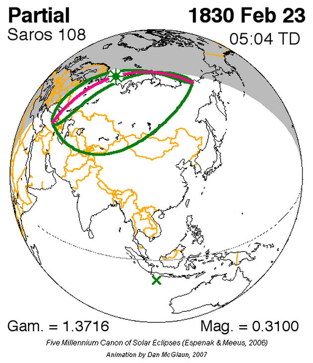 또한, 이 일식은 트리토스 주기의 일부로, 약 11년에서 1개월을 뺀 기간마다 달의 노드에서 번갈아 가며 반복된다.[1]