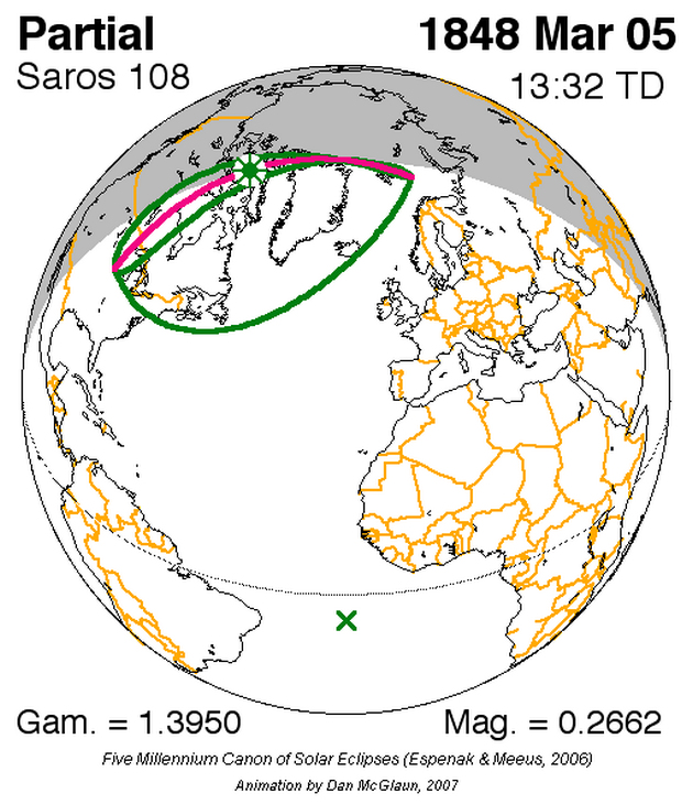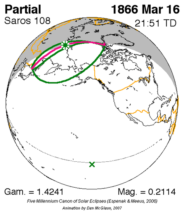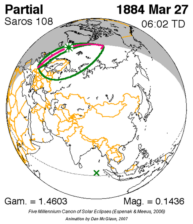 이 일식은 사로스 주기 108에 속해 있으며, 이 주기는 18년 11일마다 반복된다. 1902년 4월 8일의 부분 일식은 이 주기의 마지막 일식이다.