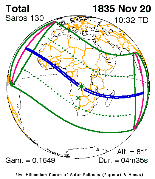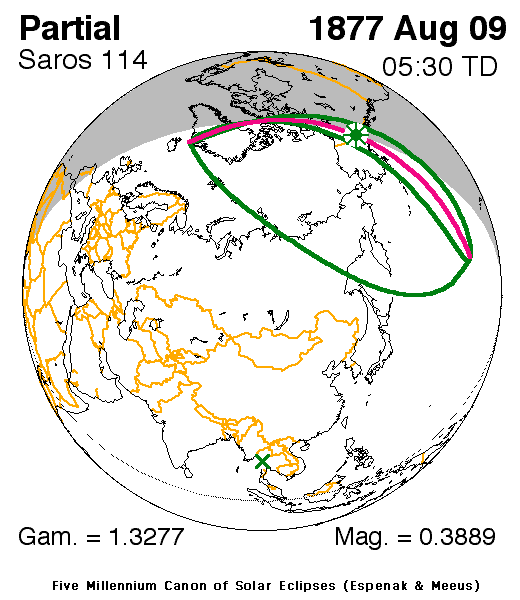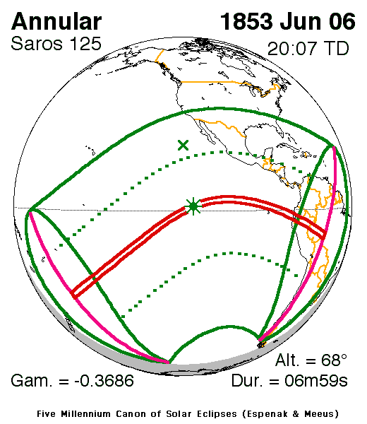 NASA 도표 | 1918년 6월 8일 개기 일식 NASA 도표 |