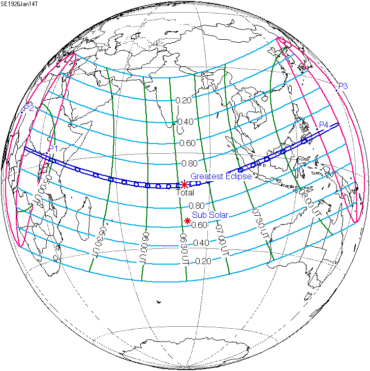 이 일식의 상세한 정보는 아래 하위 섹션들에서 확인할 수 있다. 달의 반그림자 또는 본그림자가 특정 지점에 도달하는 시간과 일식과 관련된 다양한 매개변수에 대한 정보가 포함되어 있다.[4]
