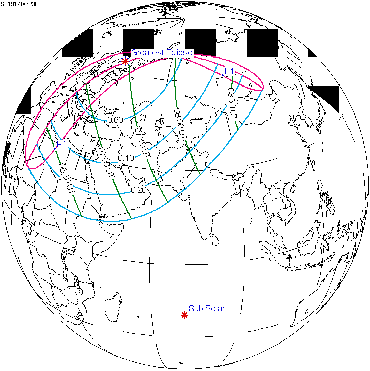 최대 일식1917년 1월 23일 07시 28분 31.3초 (UTC)