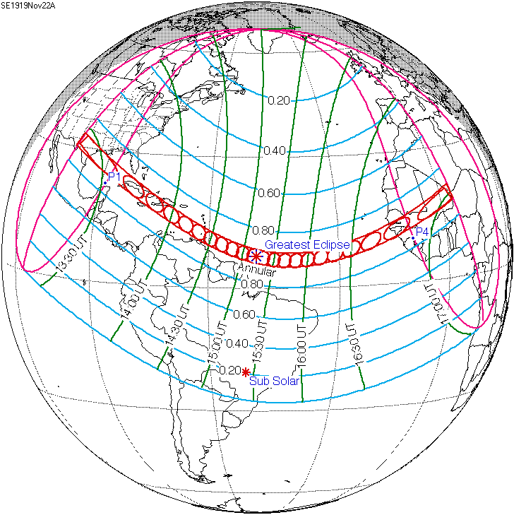 최대 일식 | 1919년 11월 22일 15:14:11.5 UTC |