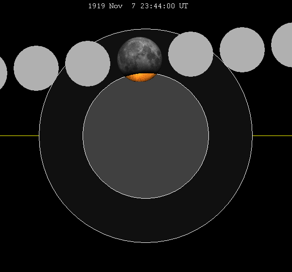 마지막 반그림자 외부 접촉 | 1919년 11월 22일 18:13:52.1 UTC |