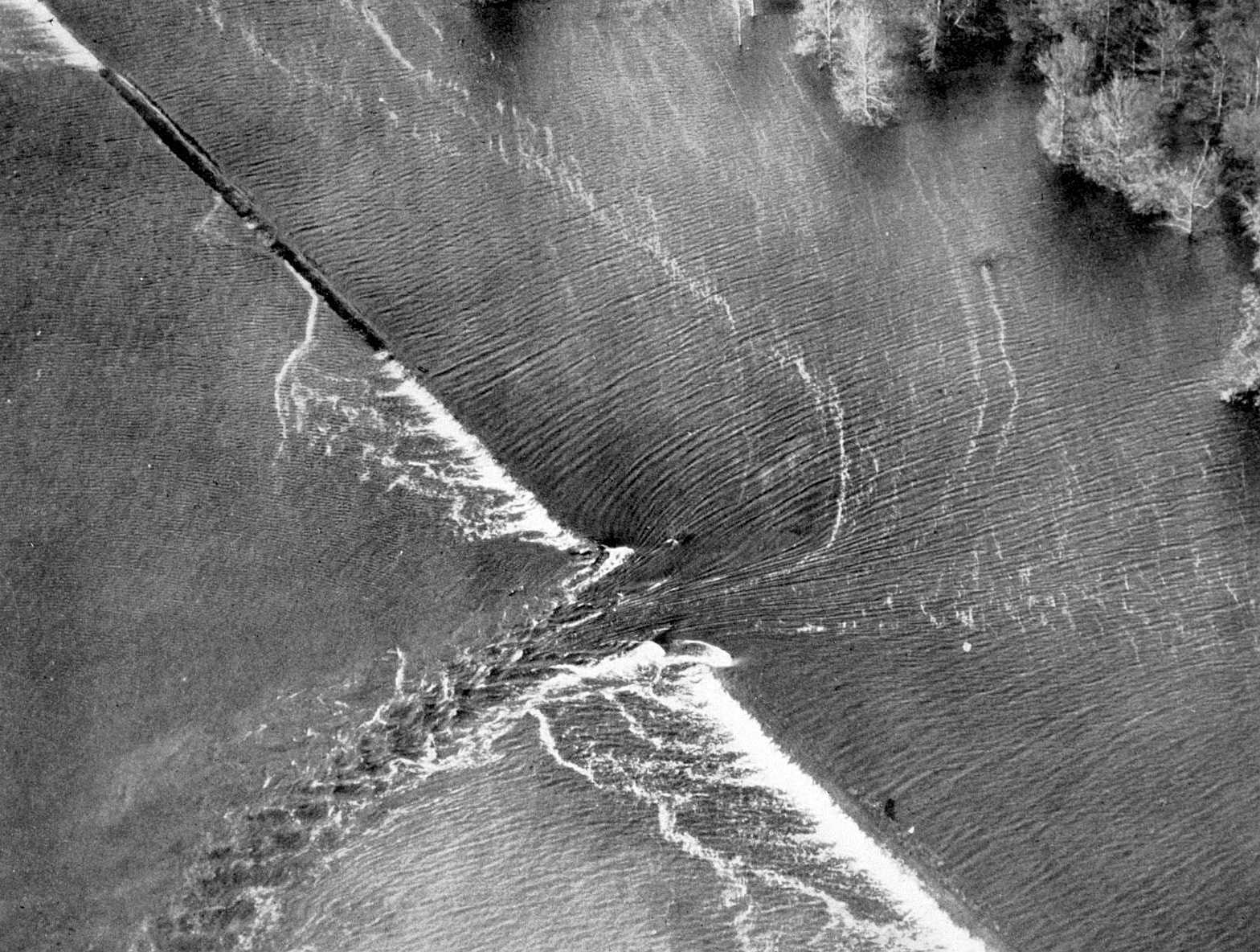 제방 붕괴의 항공 사진 (미시시피주 마운드 랜딩, 4월 21일 붕괴)