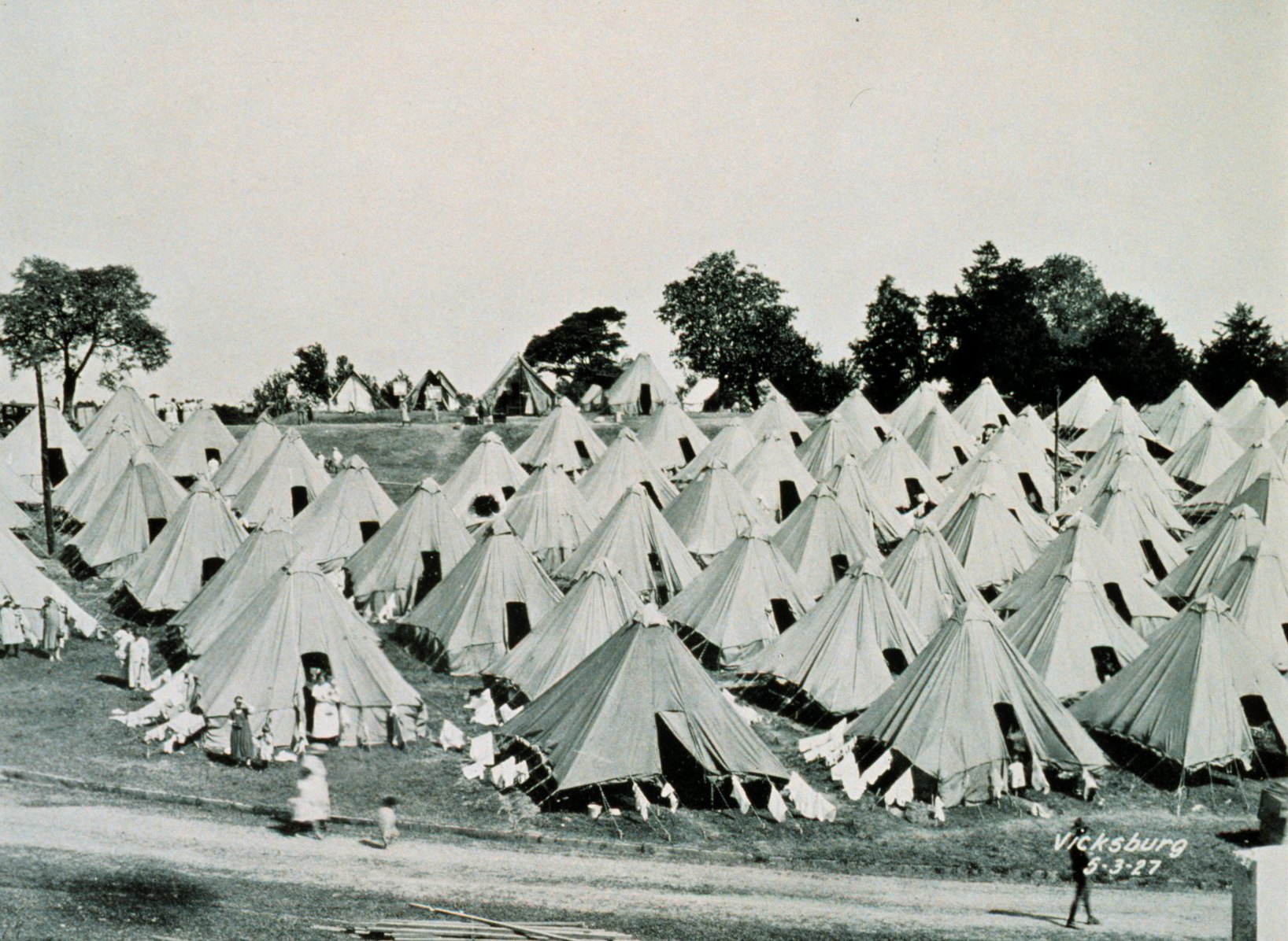 미시시피주 빅스버그의 이재민을 위한 텐트 도시