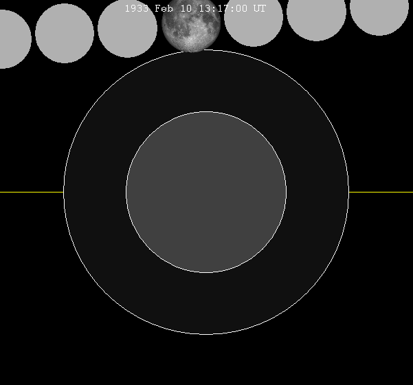 첫 번째 반그림자 외부 접촉1933년 2월 24일 09:56:13.4 UTC
