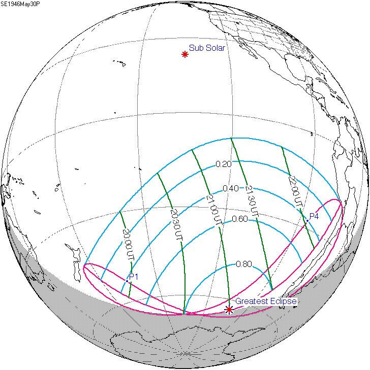 최대 일식 | 1946년 5월 30일 21:00:23.7 UTC |