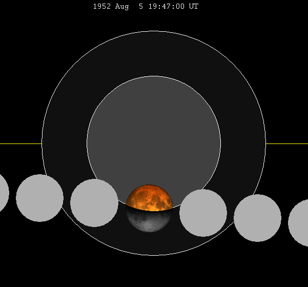 1952년 8월 20일 일식은 달의 반그림자나 본영이 특정 매개변수에 도달하는 시간과 일식 관련 매개변수를 상세히 설명한다.[3]
