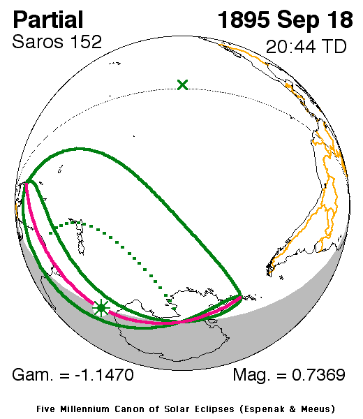 1953년 2월 14일에 발생한 부분 일식은 남극, 남부 호주, 뉴질랜드 등 남반구 지역에서 관측되었으며, 여러 주기와 연쇄에 따라 이전 및 다음 일식과 연결되는 사로스 149 주기의 18번째 일식이다. - 20세기 일식 - 1908년 1월 3일 일식