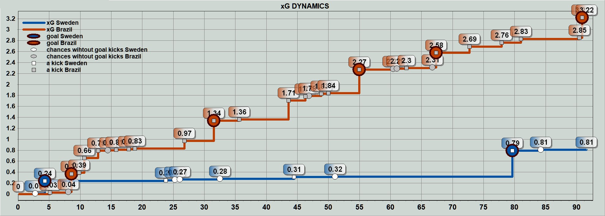 결선 토너먼트에 진출한 브라질은 8강전에서 웨일스를 만나 1-0 신승을 거두었다. 이어 준결승전에서는 프랑스를 5-2로 대파하며 결승전에 올랐다.