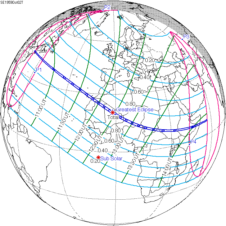 최대 일식 | 1959년 10월 2일 12:27:00.1 UTC |