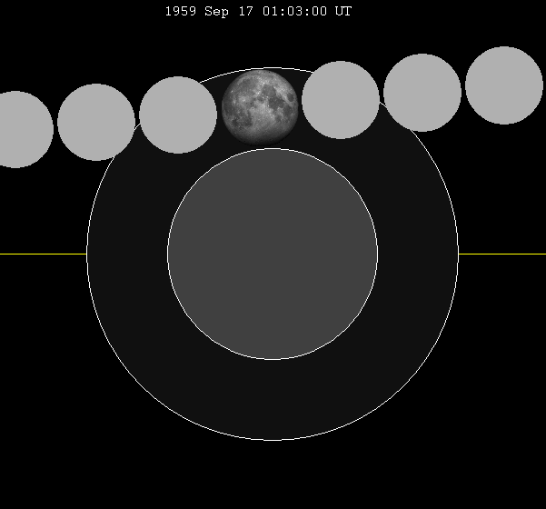 첫 번째 반그림자 외부 접촉 | 1959년 10월 2일 09:49:42.6 UTC |