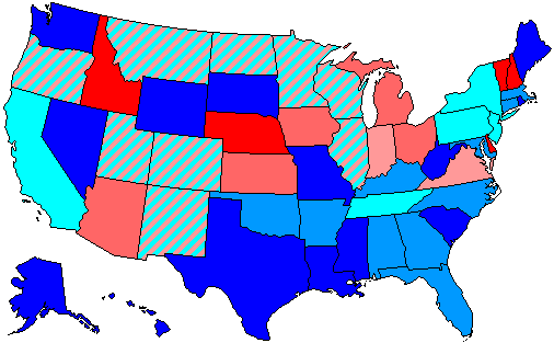 공화당 | 192 | 180 | 12 | 41.4% | 24,352,657 | 44.9% | 3.6% |