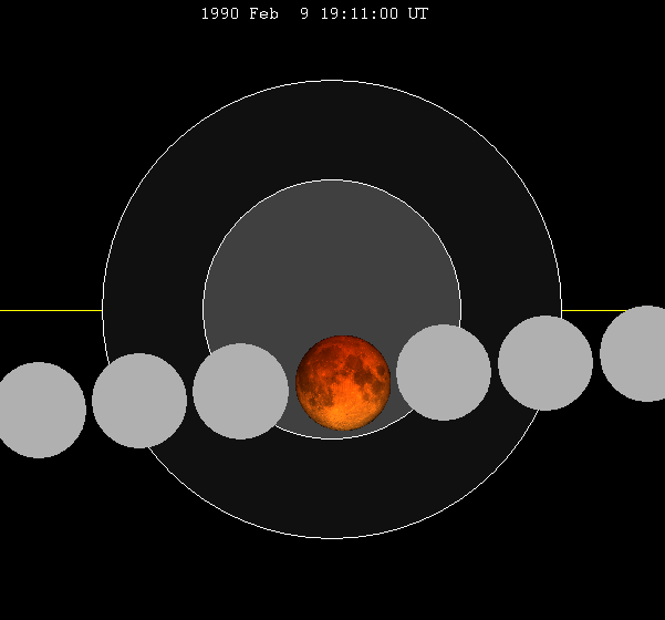 1990년 1월 26일에 있었던 일식의 진행 과정에 대한 세부 정보는 아래 하위 섹션에서 확인할 수 있다. 하위 섹션에서는 달의 반그림자 또는 본영이 특정 지점에 도달하는 시간과, 일식과 관련된 다양한 천문학적 매개변수들을 상세히 다룬다.[3]