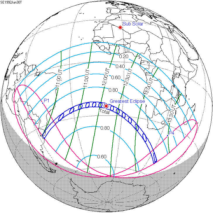 최대 일식 | 1992년 6월 30일 12:11:21.8 UTC |
