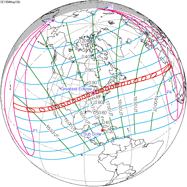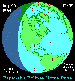 1994년 5월 10일 일식은 달의 반그림자 또는 본그림자가 특정 매개변수에 도달하는 시간, 그리고 이와 관련된 다양한 매개변수를 포함한다.[4] 자세한 정보는 하위 섹션인 '시간'과 '매개변수'에서 확인할 수 있다.